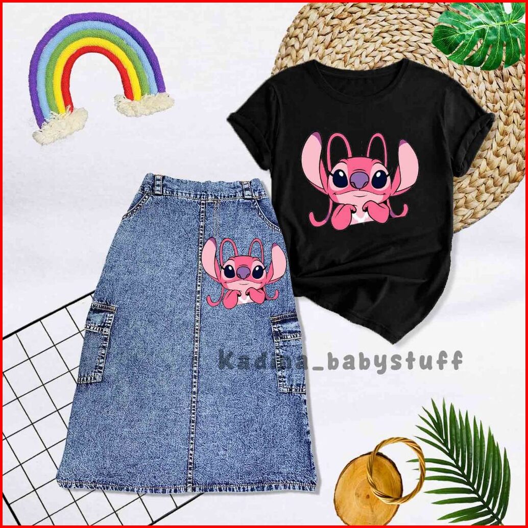 Setelan Cargo Anak Perempuan Setelan Jeans Anak Perempuan Rok Kargo Anak Perempuan Kaos Motif Anak