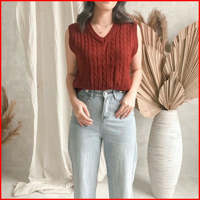 Vest Rompi Cable Tebal Knit Premium Rompi Rajut Wanita