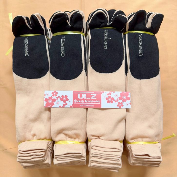 1 lusin kaoskaki ulz jempol nylon L panjang krem tapak hitam nonkemas