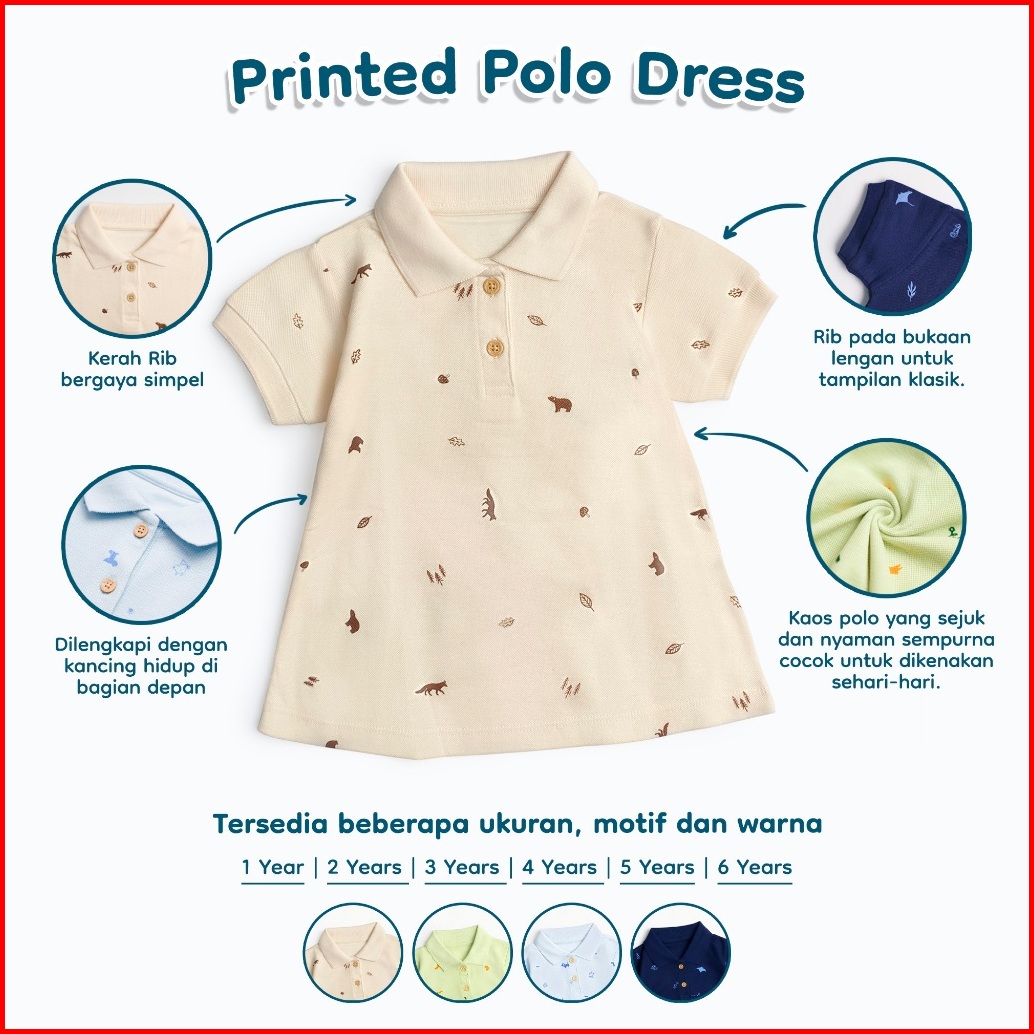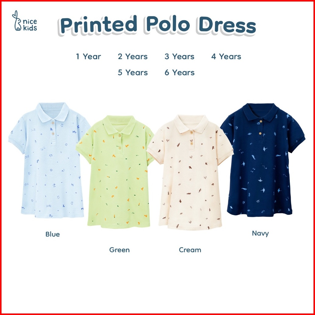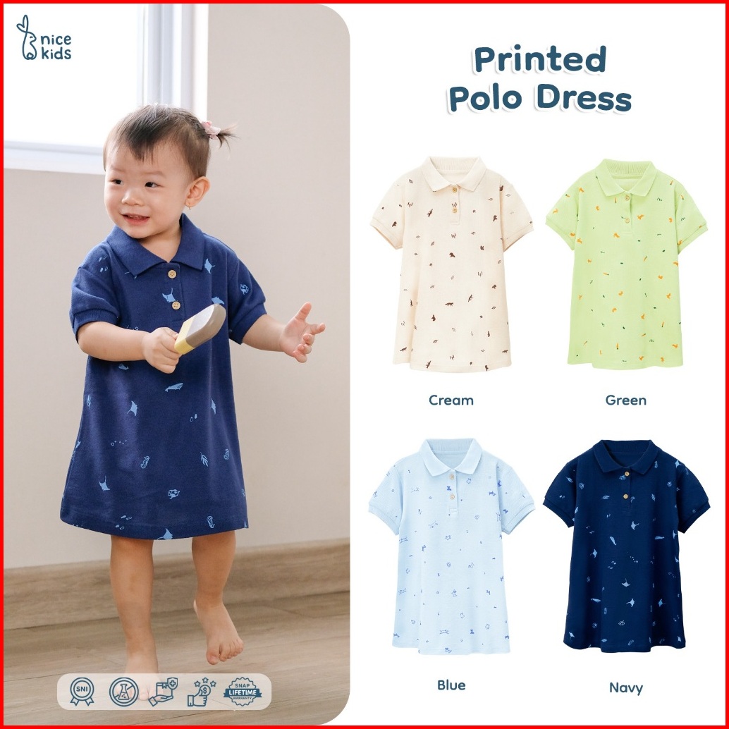 Nice Kids - Printed Polo Dress Terusan Berkerah Motif Anak Perempuan