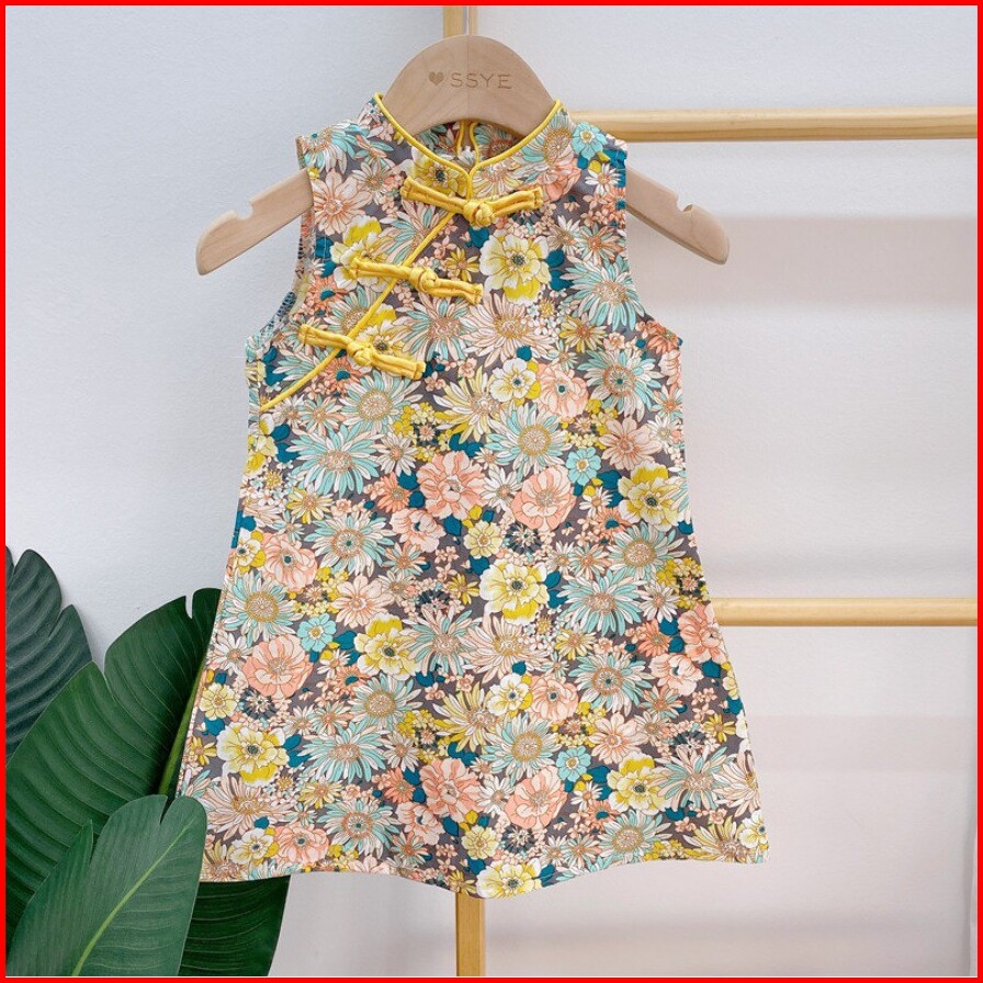 Dc11 Dress Cheongsam Anak Dress Bayi Pakaian Bayi Anak Perempuan Cheongsam Motif Bunga Cocok Untuk Imlek