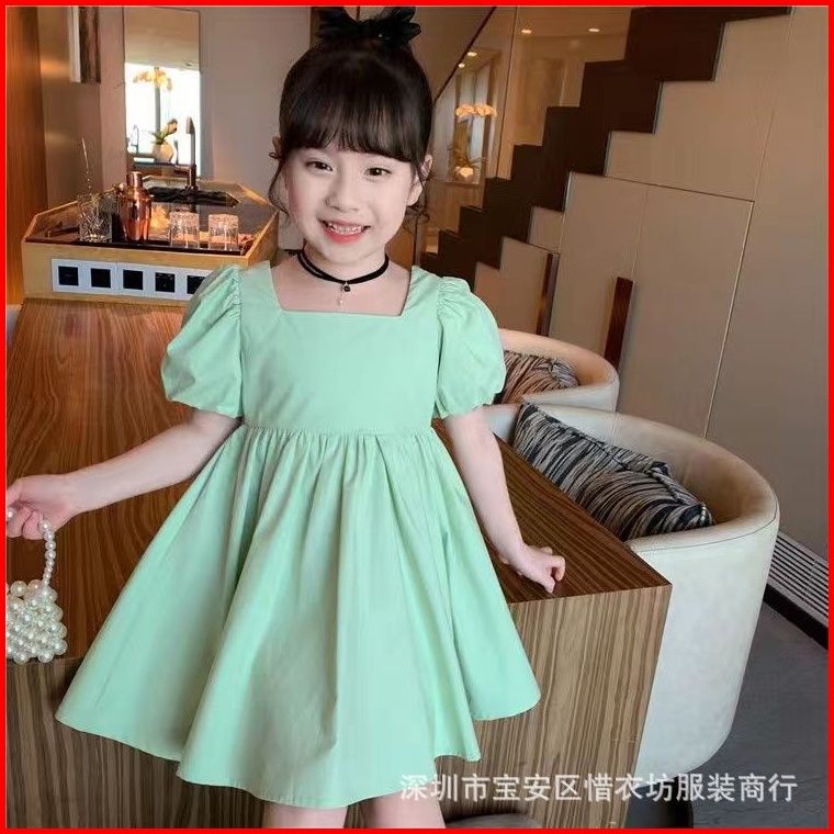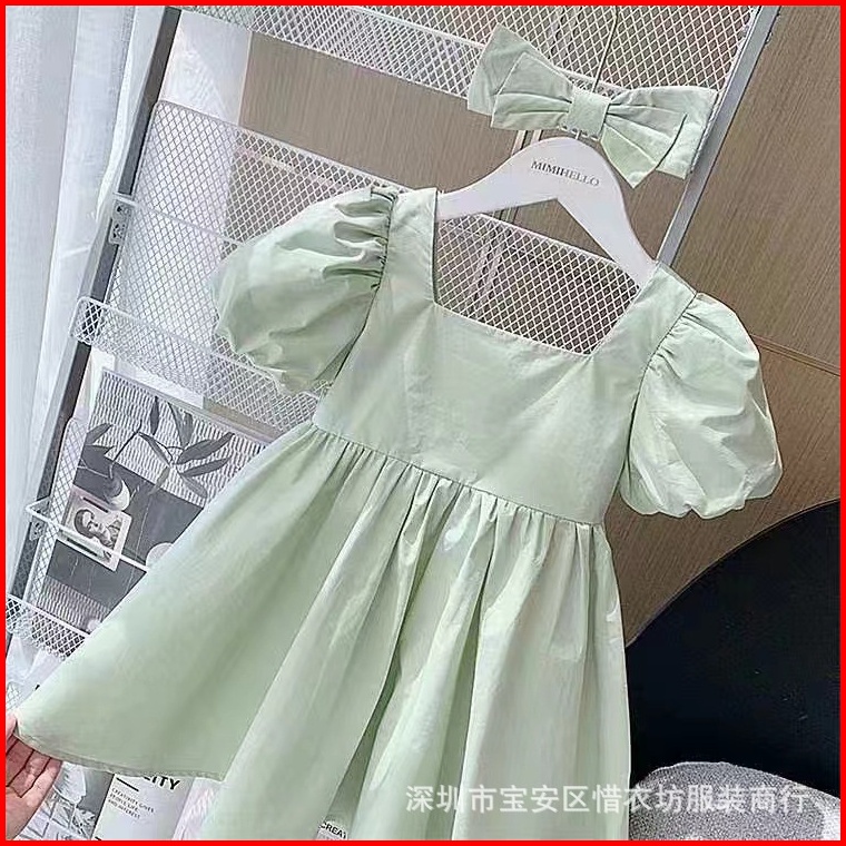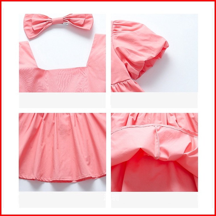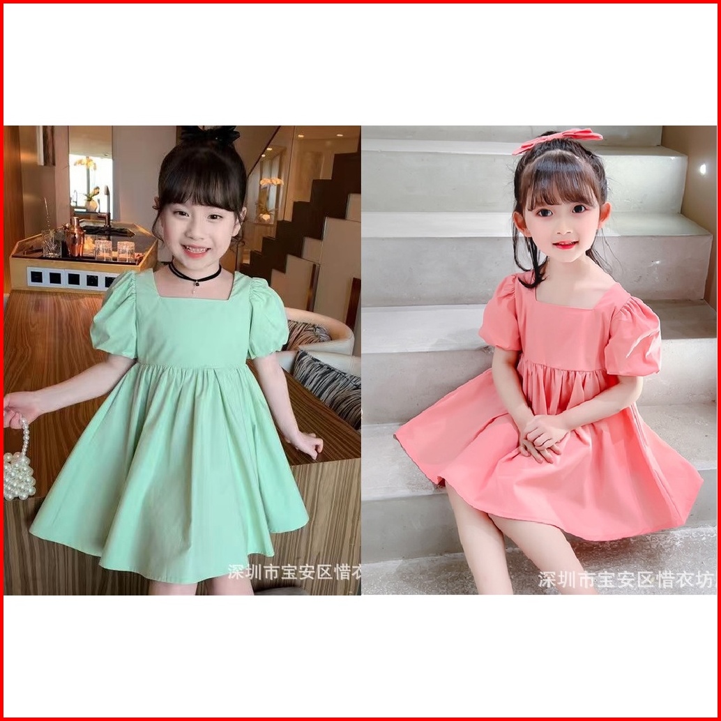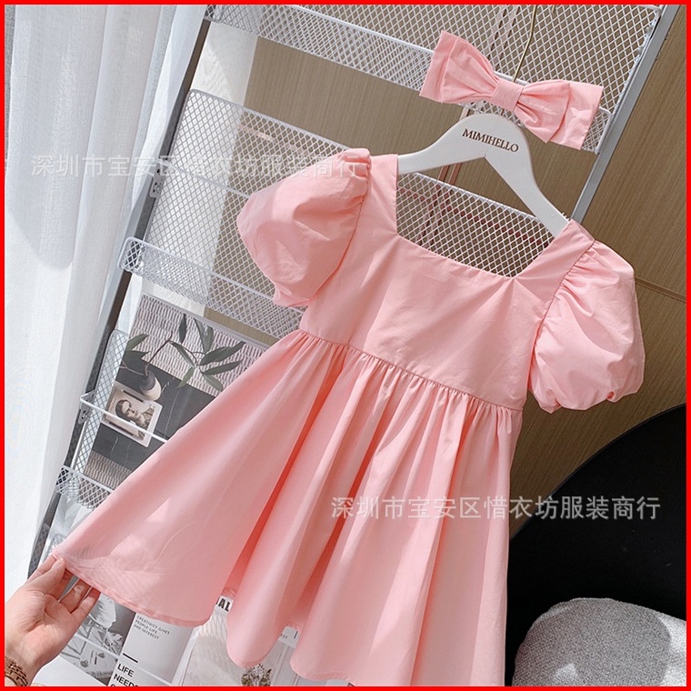 Dress Gaun Anak Motif Polos Pita Rambut Import Bahan Tebal