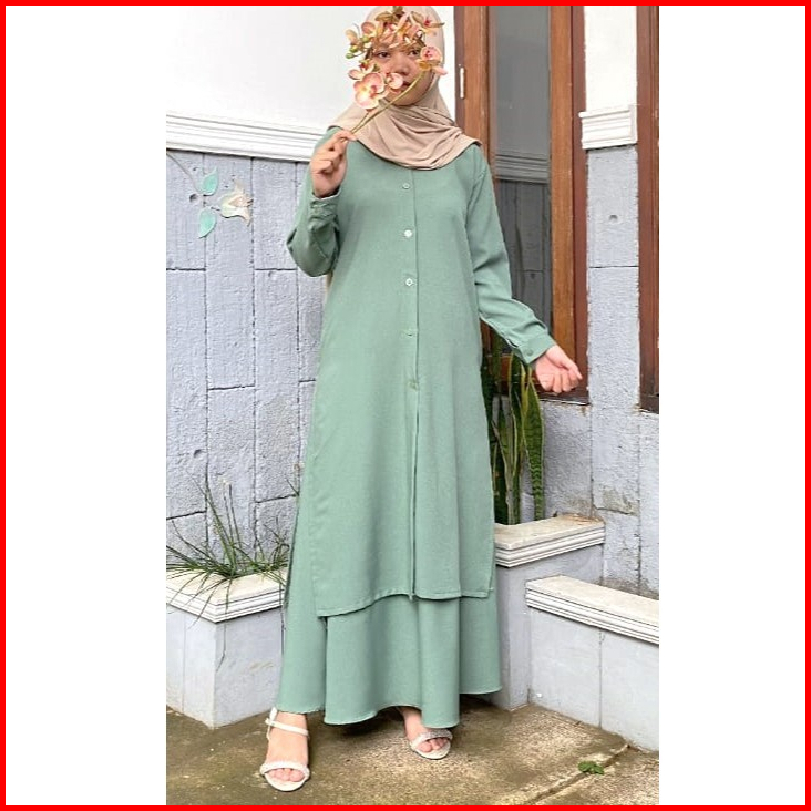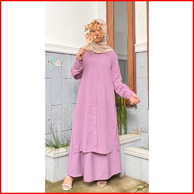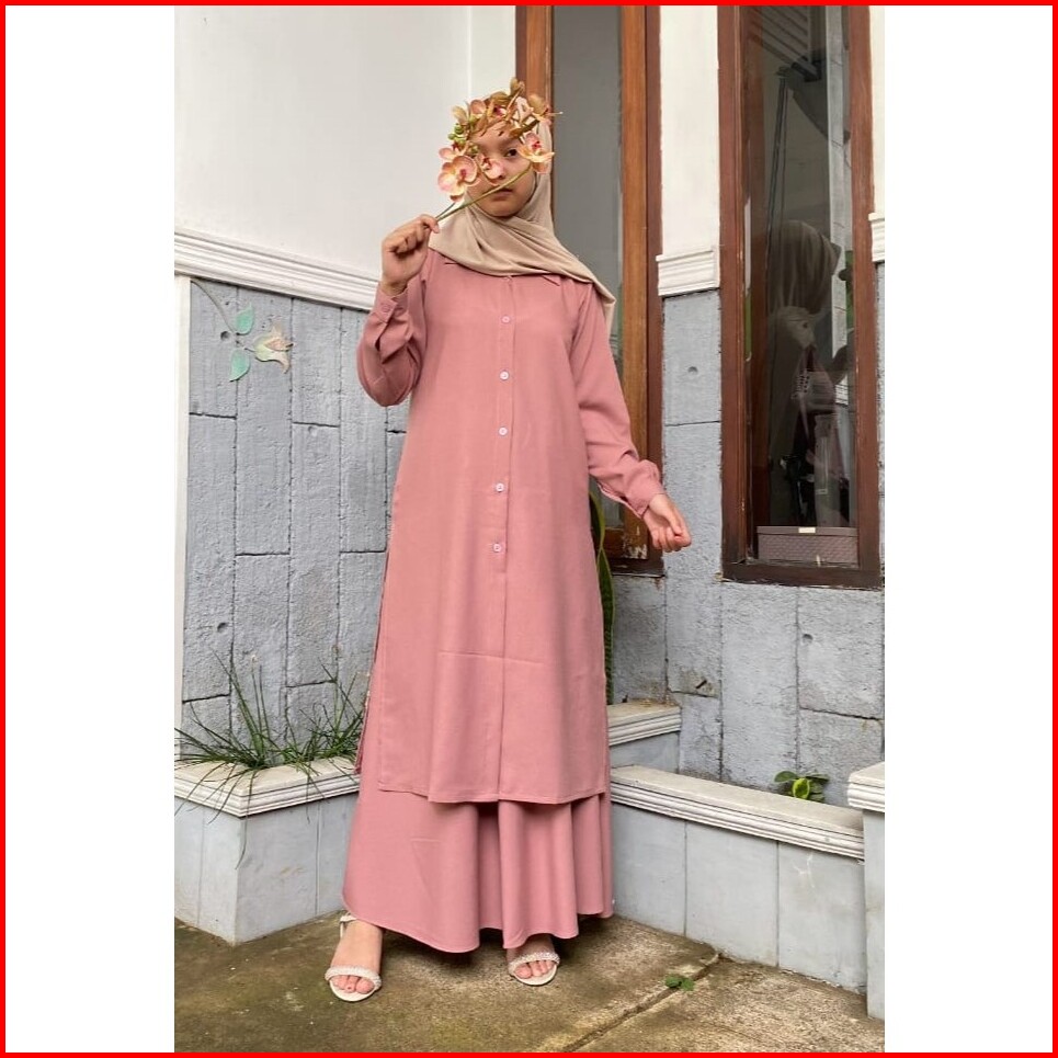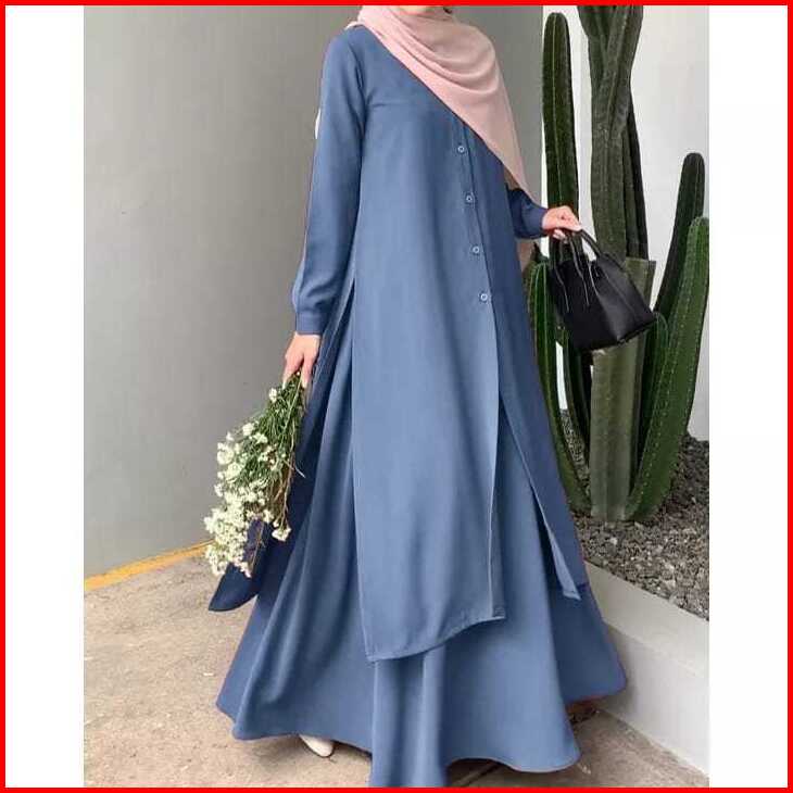 One Set Rok Tunik Hanum Busui Wanita Muslim Jumbo Bahan Itty Creepe Terbaru Size M L Xl Xxl