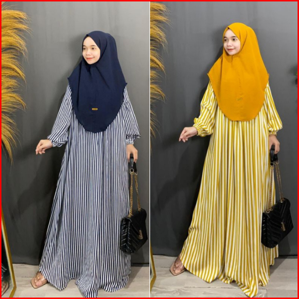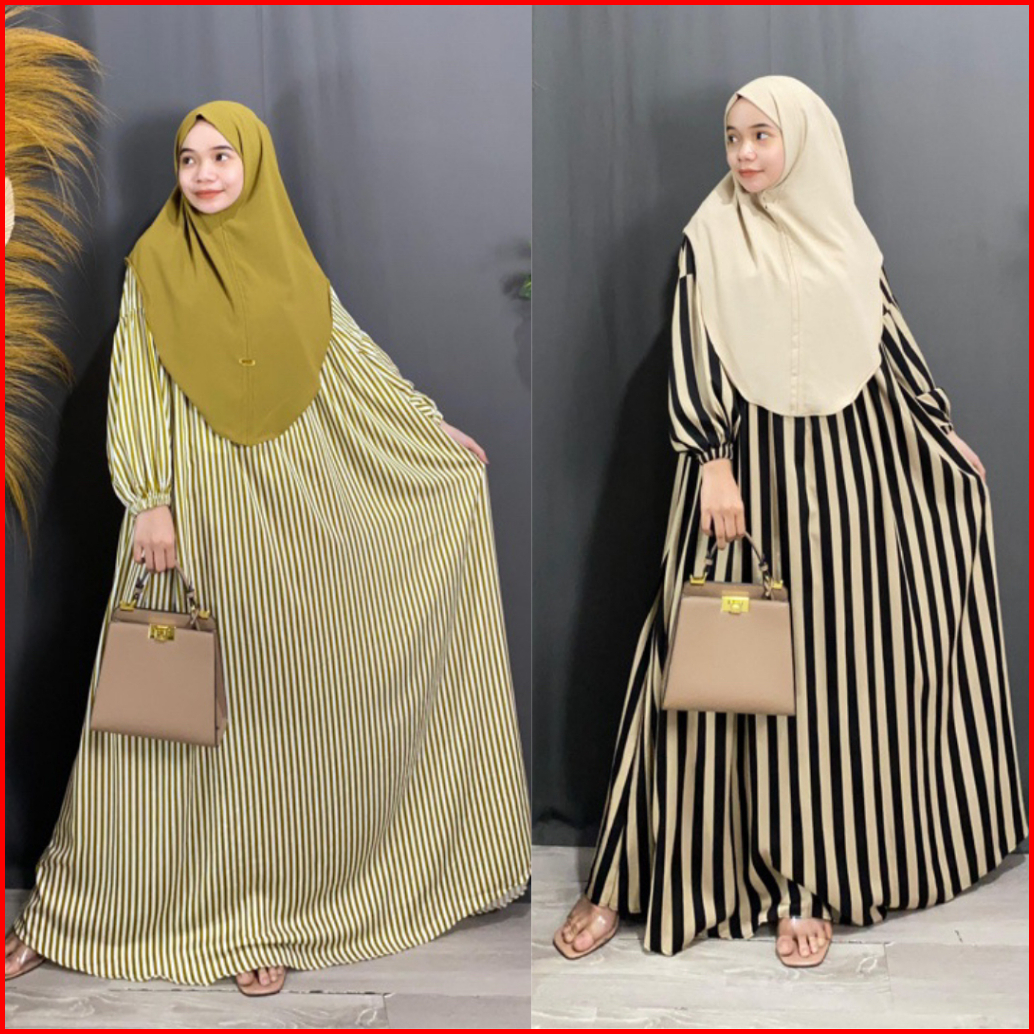 Hanum Dress Rayon Setelan Wanita Kombinasi Set Abaya Khimar