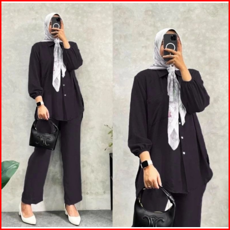 Setelan Amanda Busui Cringkle Airflow One Set Kemeja Amanda Crinkle