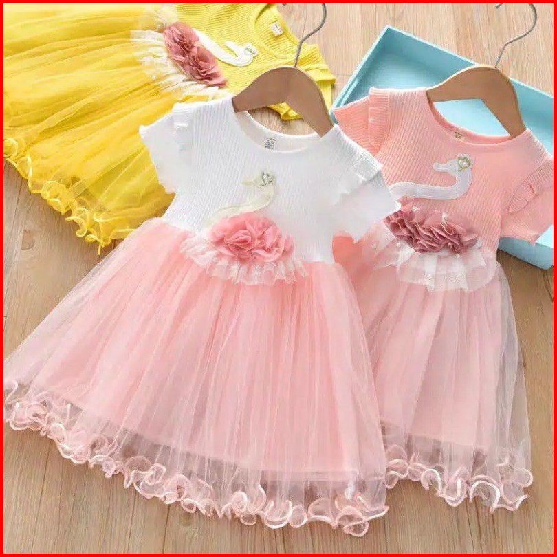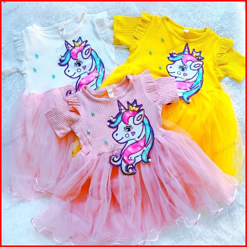 0-5th Dress Tutu Anak Gaun Pesta Dress Tile Anak Imut Motif Unicorn Mutiara Angsa Dress Tutu Anak Import Premium