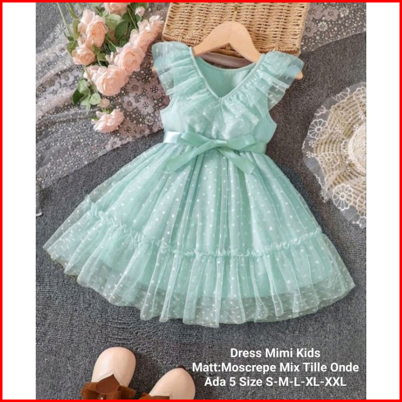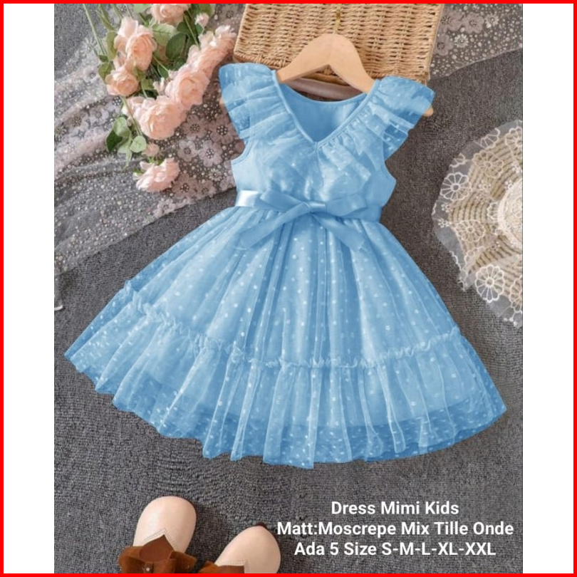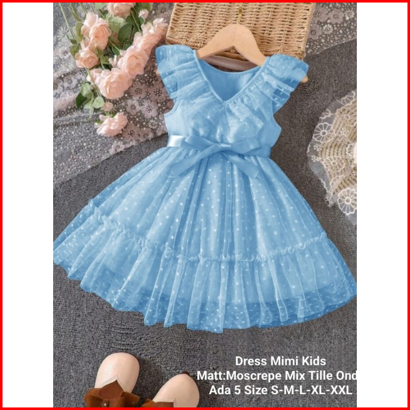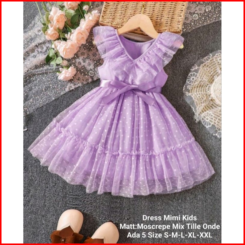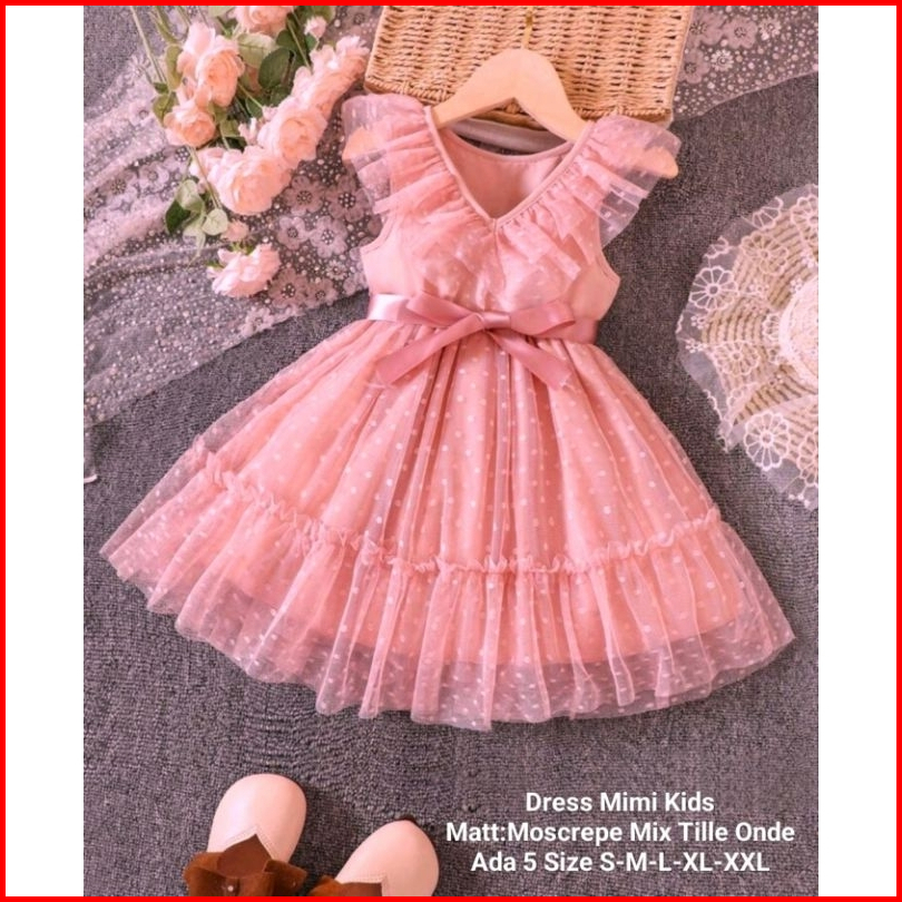 Dress Anak Perempuan Terbaru Untuk Acara Pesta Model Kerutan Dress Mimi Kids 5 Ukuran S-xxl Moscrepe Mix Tille Tutu Onde