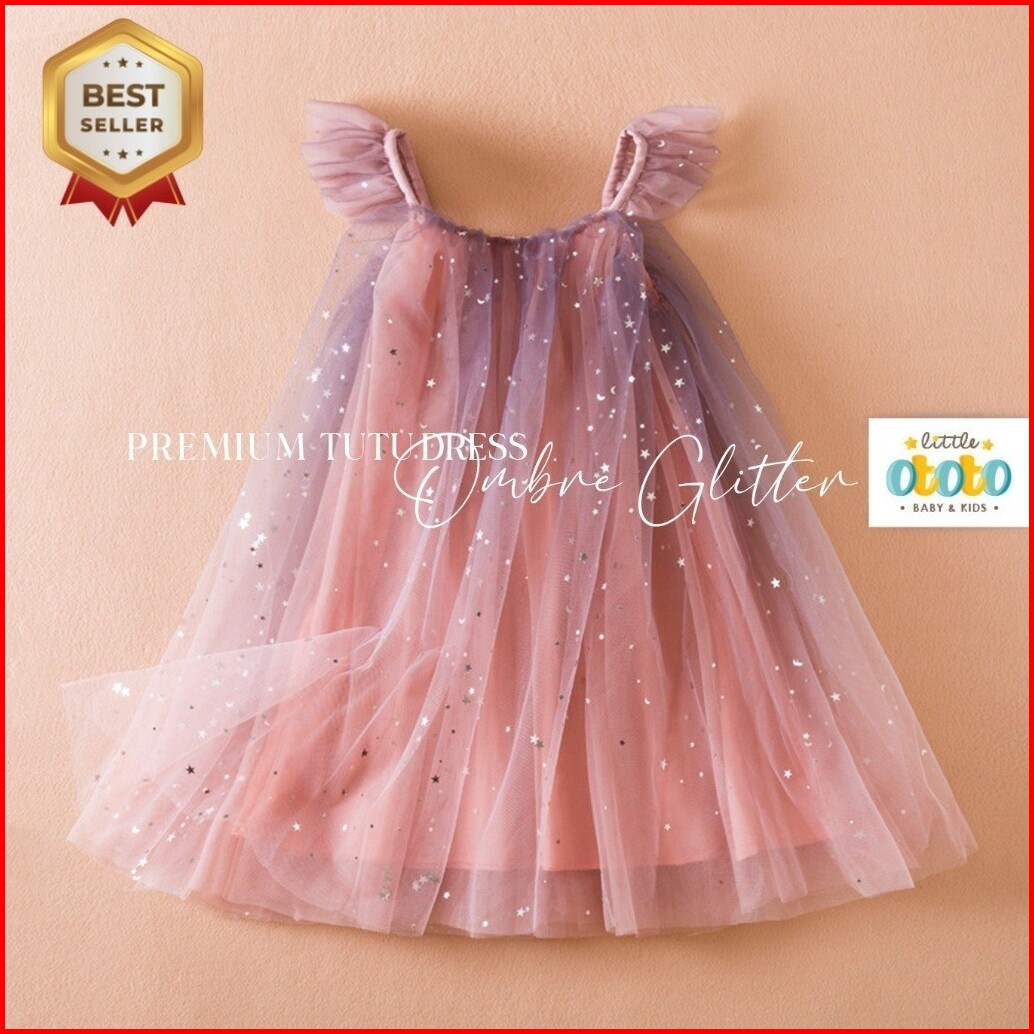 Littleototo 2-8th Dress Tutu Glitter - Import Korea Baju Baby Bayi Anak Gaun Tile Tulle Pesta Elegan Balita Ulang Tahun