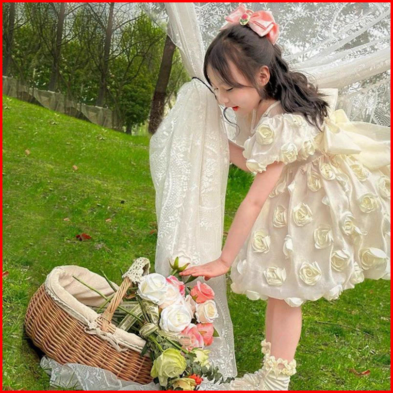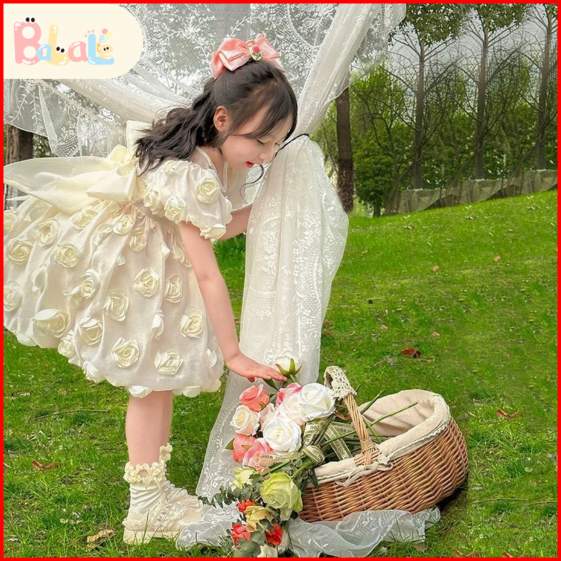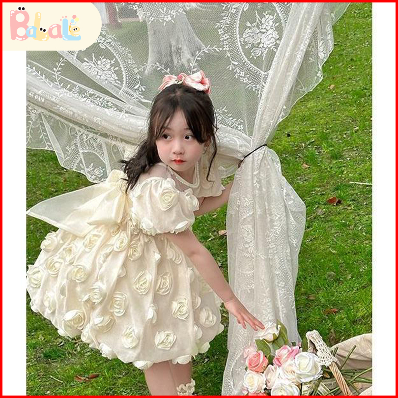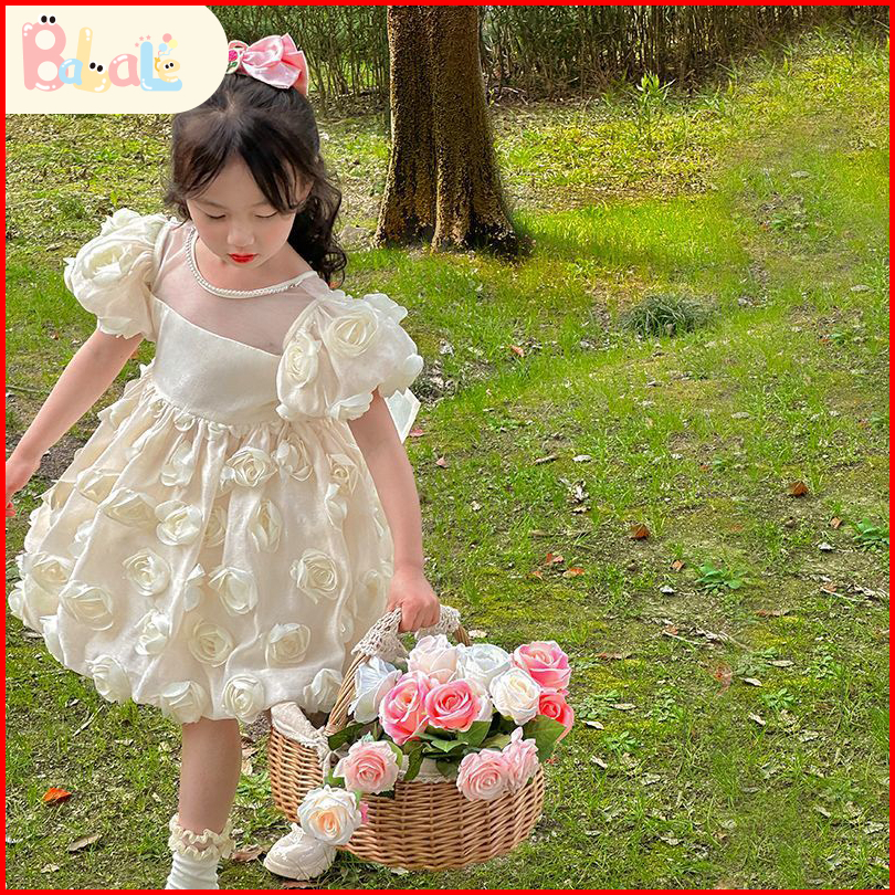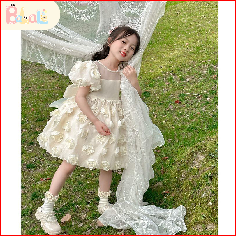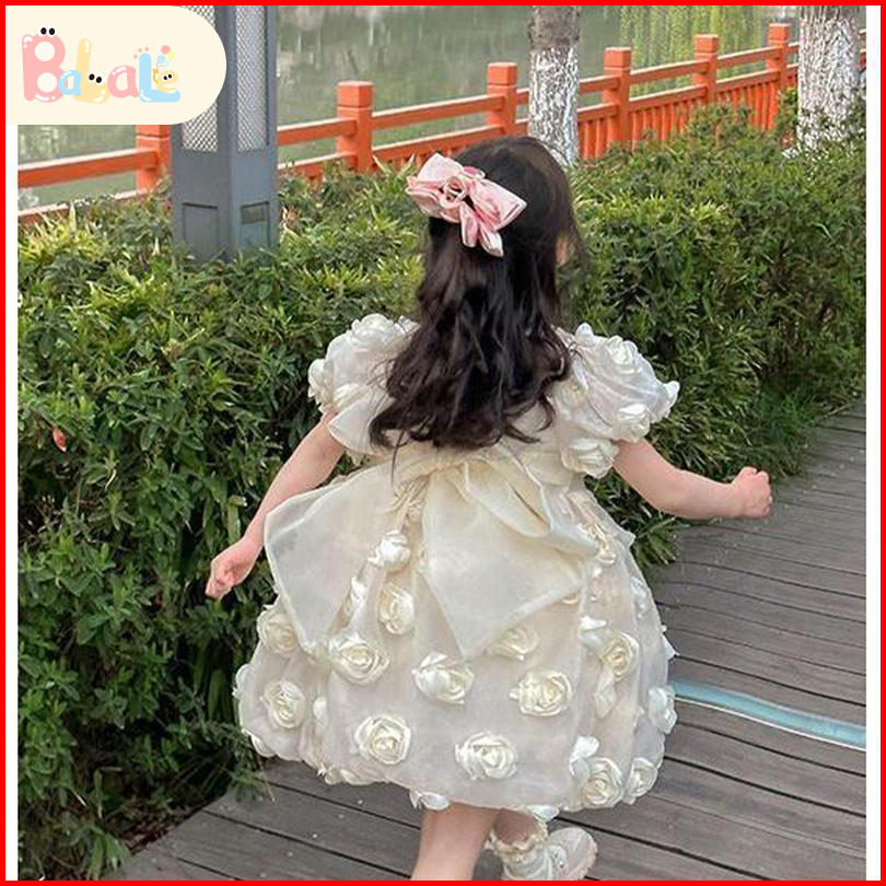 Dress Anak Perempuan Import Gaya Barat Princess Dress Gaun Lengan Pendek Baju Anak Perempuan Dress Pesta