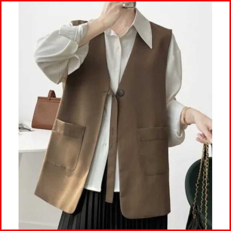Rompi Vest Wanita Over Size Model Korea Kekinian Atasan Wanita Bolero 099