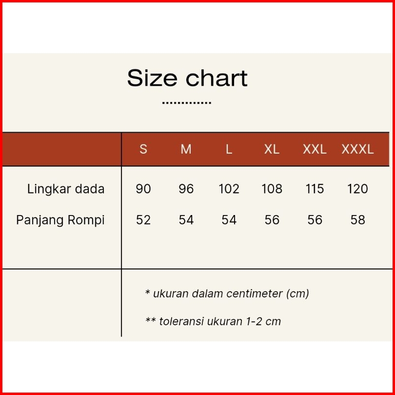 Hitam, Putih, Cream, Navy, Cofee, Hijau Army, Teracota, Marun, Hitam mix Batik, Hitam mix Putih