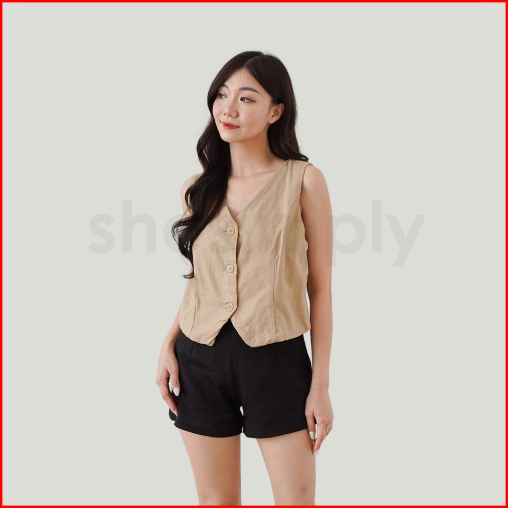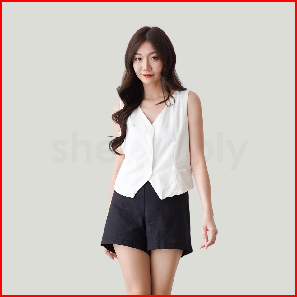 Shesimply Vest Bora Top Atasan Vest Wanita Blouse Casual Rompi Kerah V-neck Outer Premium Fashion Office Korean Style
