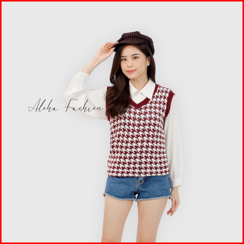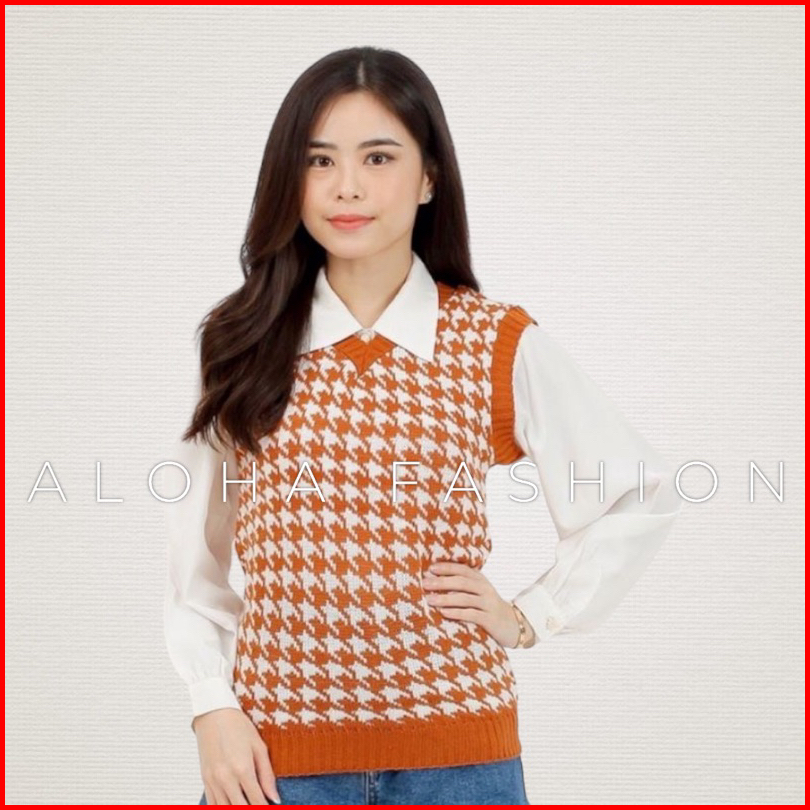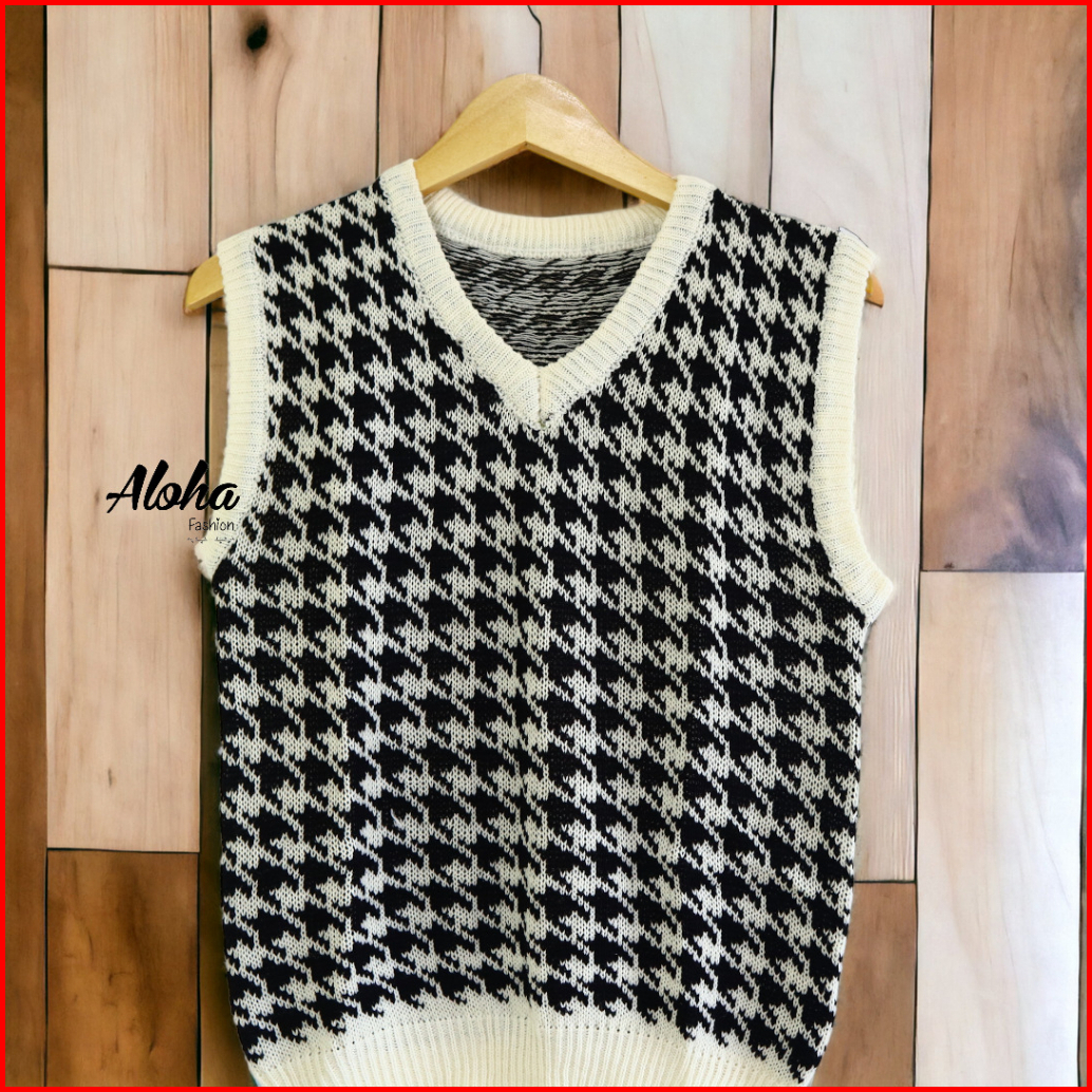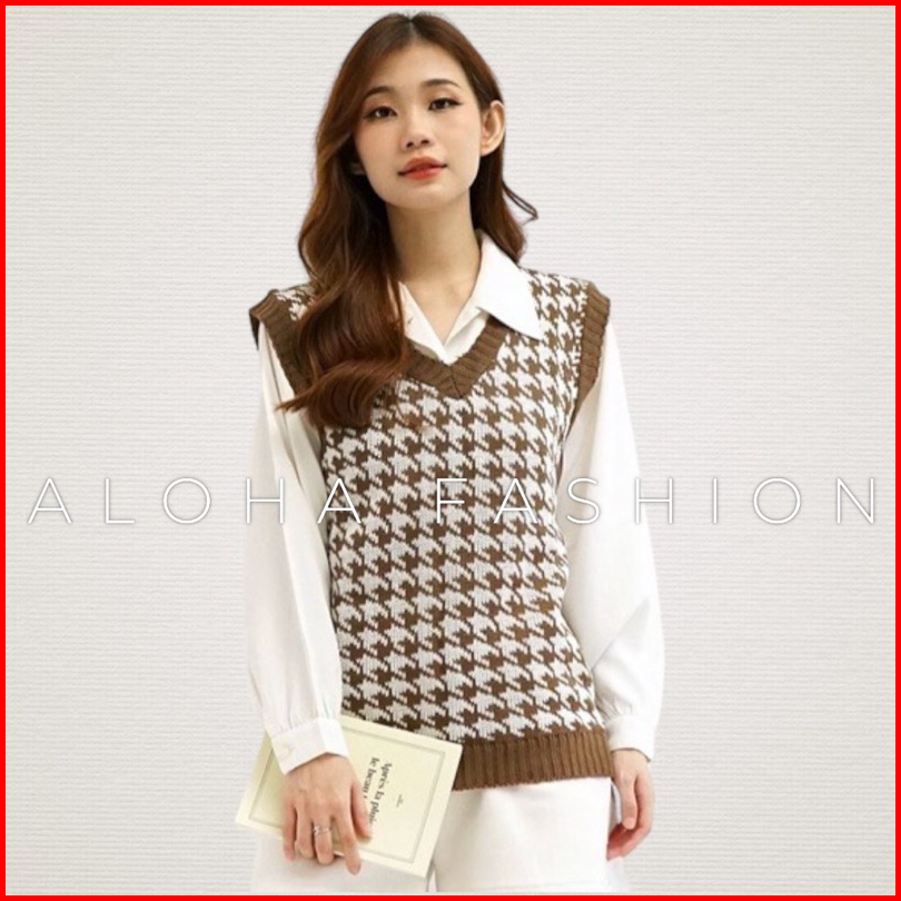 Aloha Terviral Jennie Vest Rajut 201 Houndstooth Vest Rompi Korea Jennie Blackpink Vest Wanita
