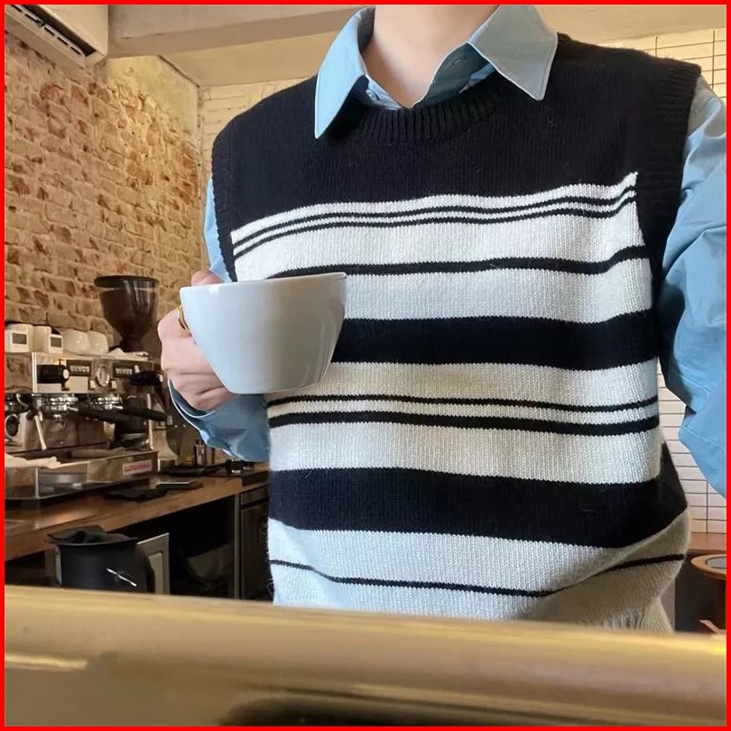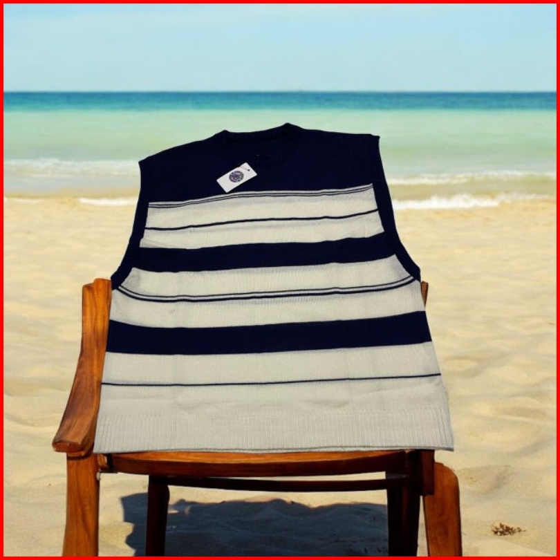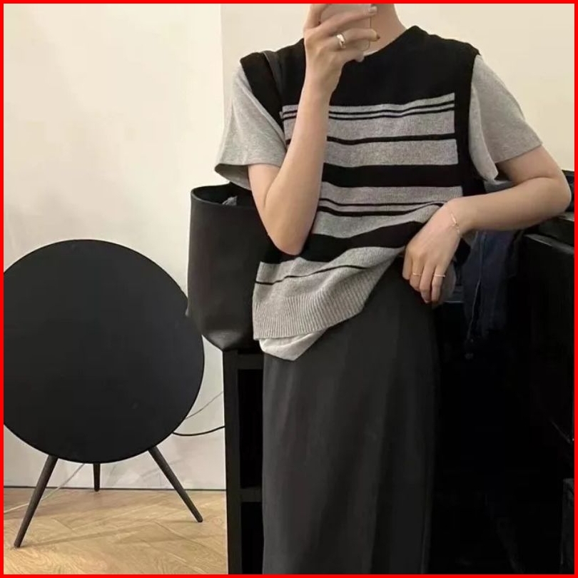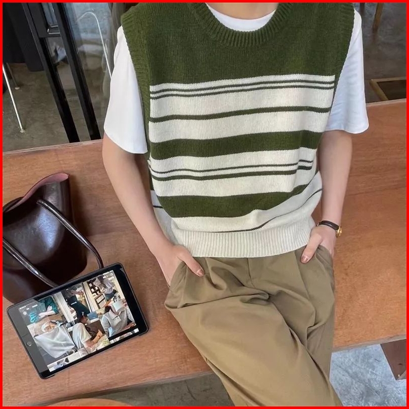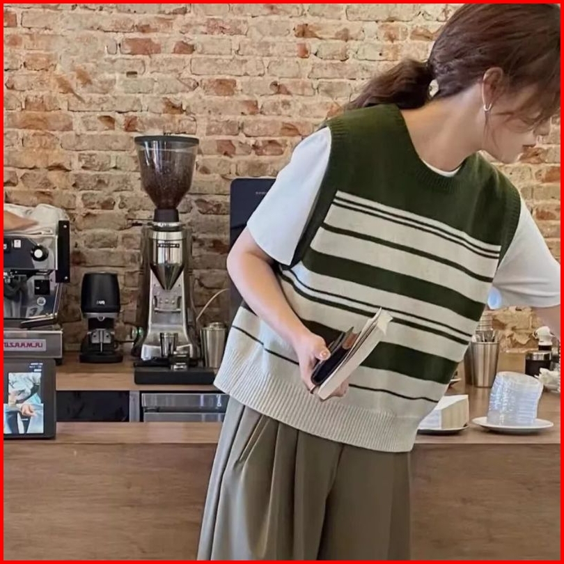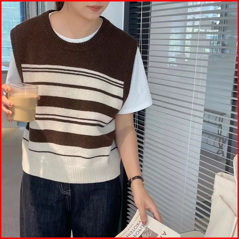 Stella Vest Rompi Motip Garis Rajut Wanita Korea