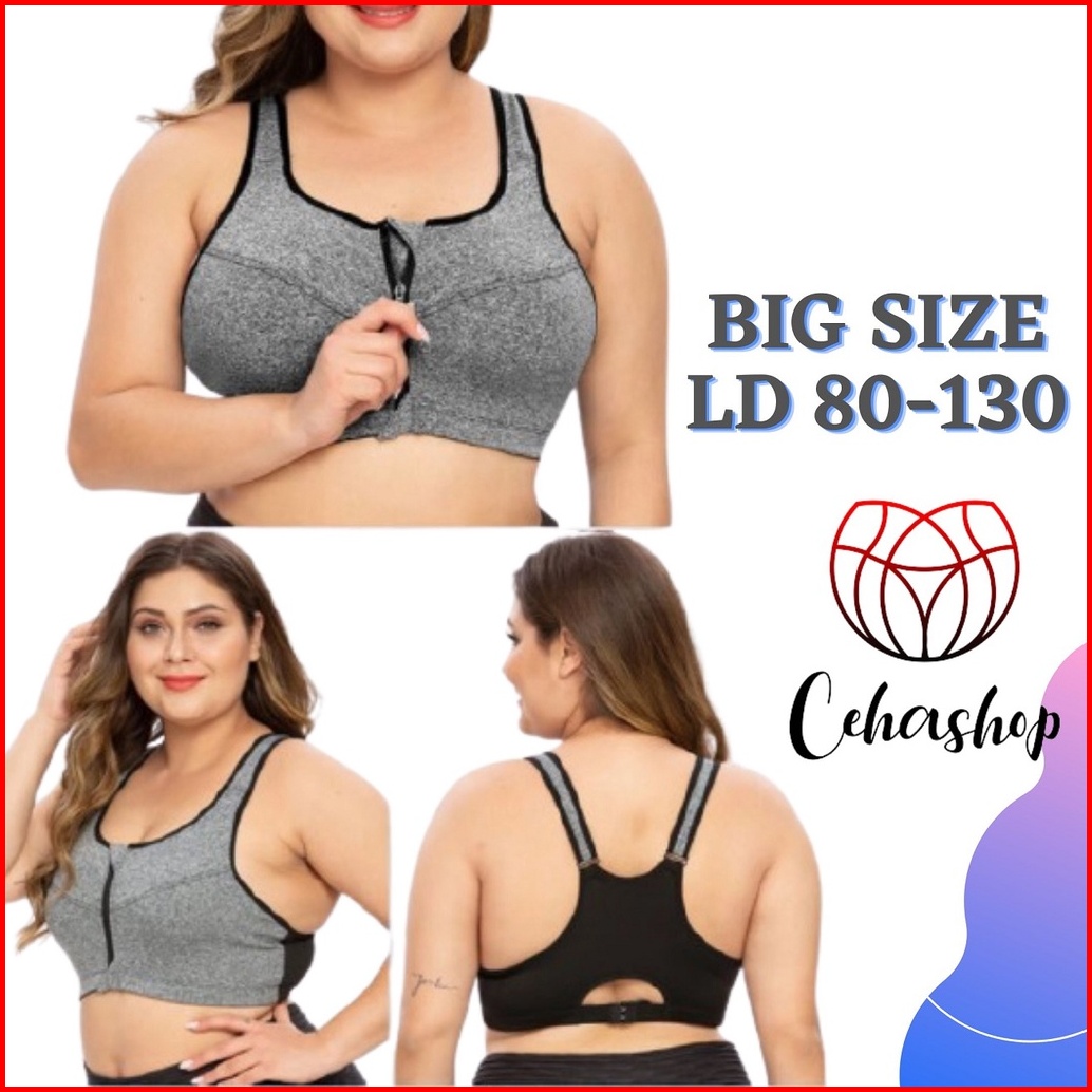 Cehashop Bra Bh Sport Jumbo Big Size Resleting Buka Depan Kait Depan Olahraga High Impact Busa Tanpa Kawat