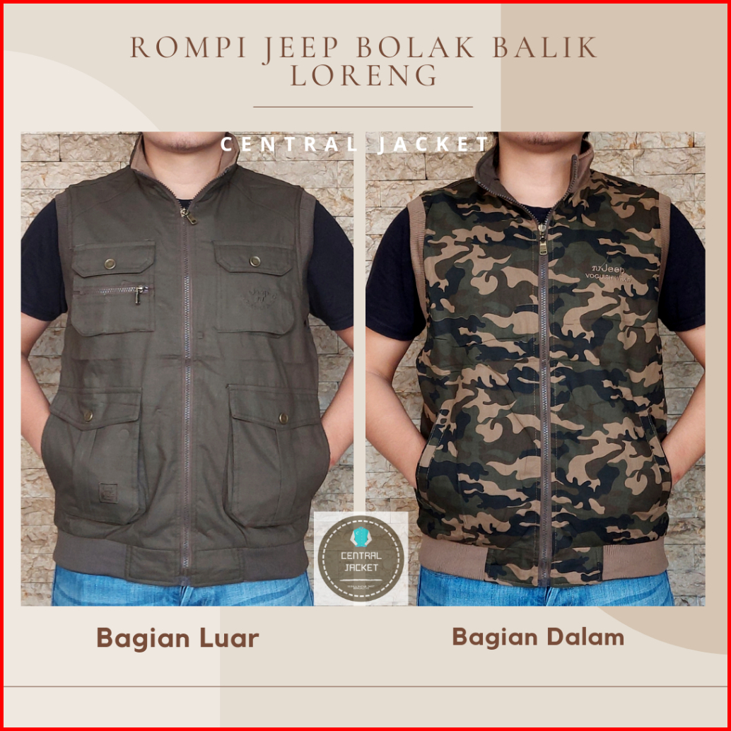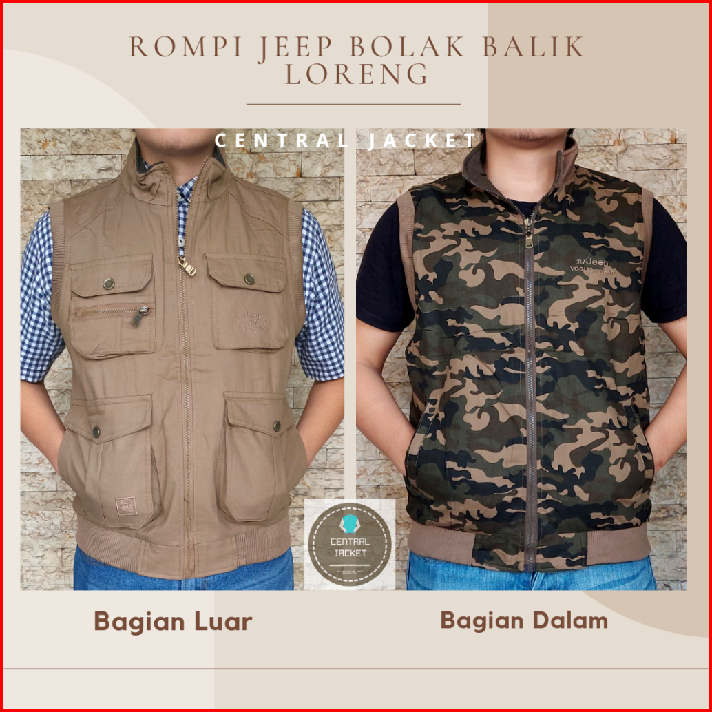 Rompi Jeep Bolak Balik - Rompi Kargo Premium - Rompi Outdoor Tactical - Rompi Motor Anti Angin