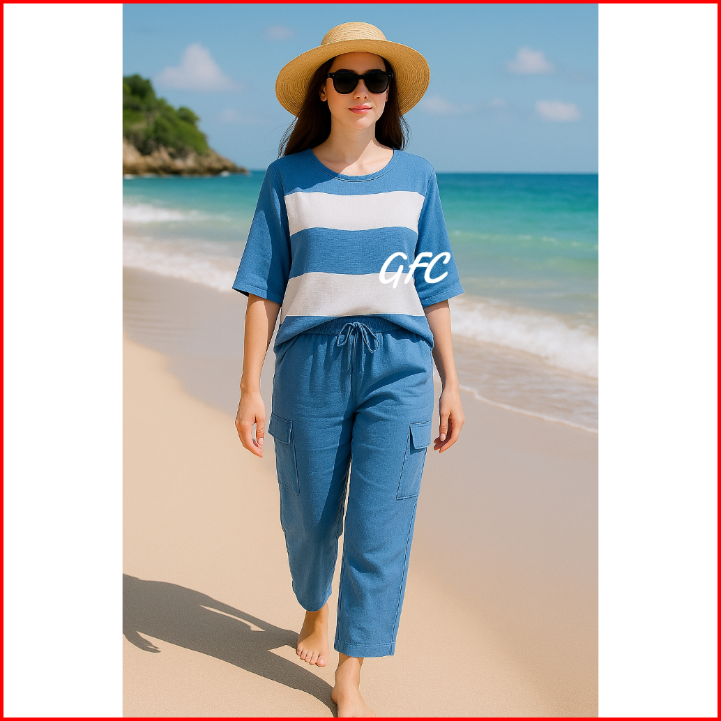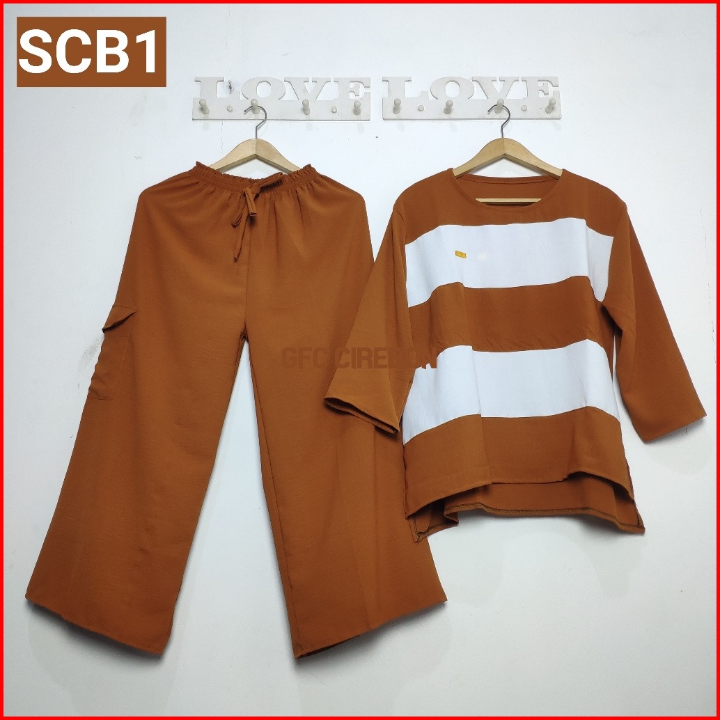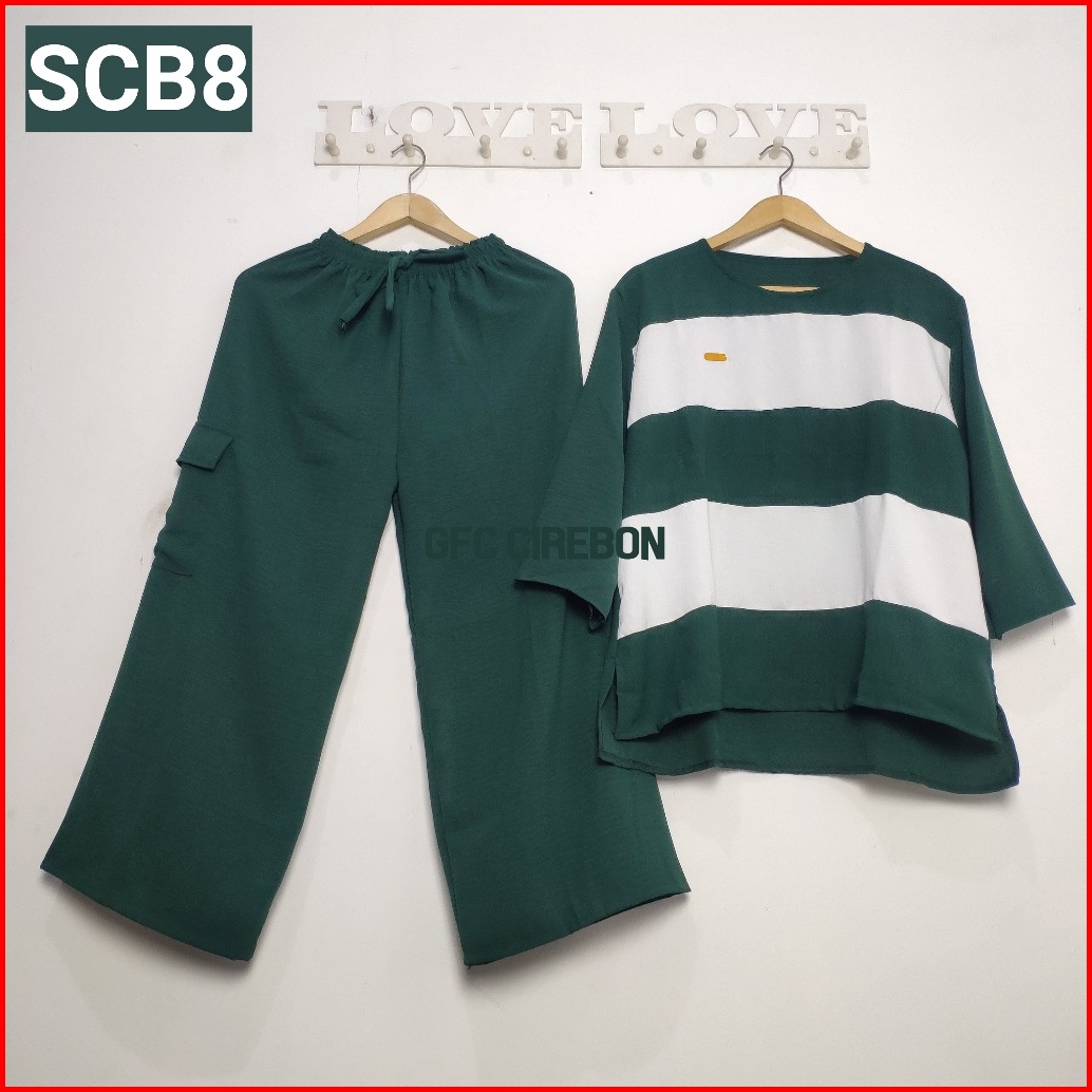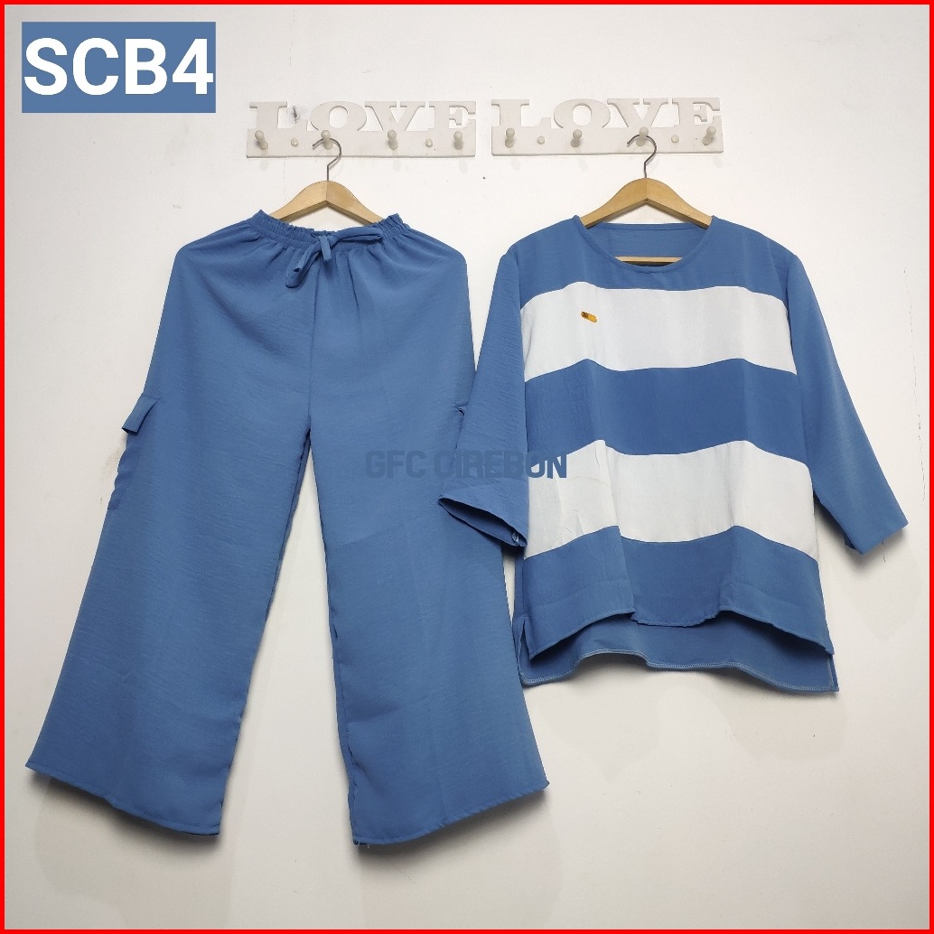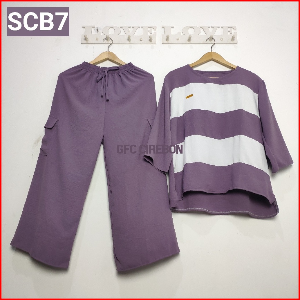One Set Blaster Celana Cargo Bahan Crinkle Airflow Baju Wanita Kekinian Celana Panjang Lengan Tanggung