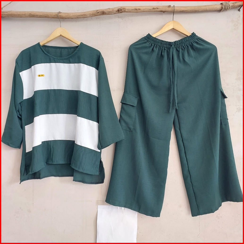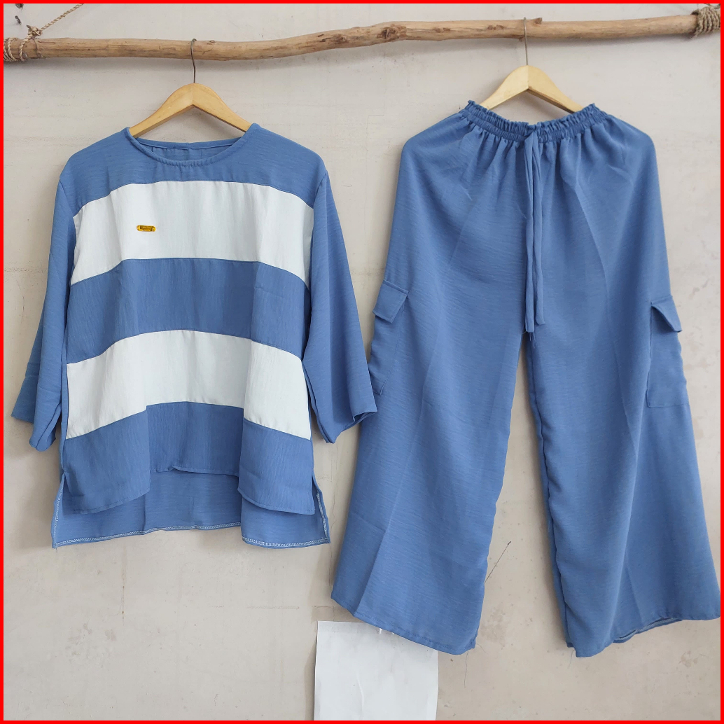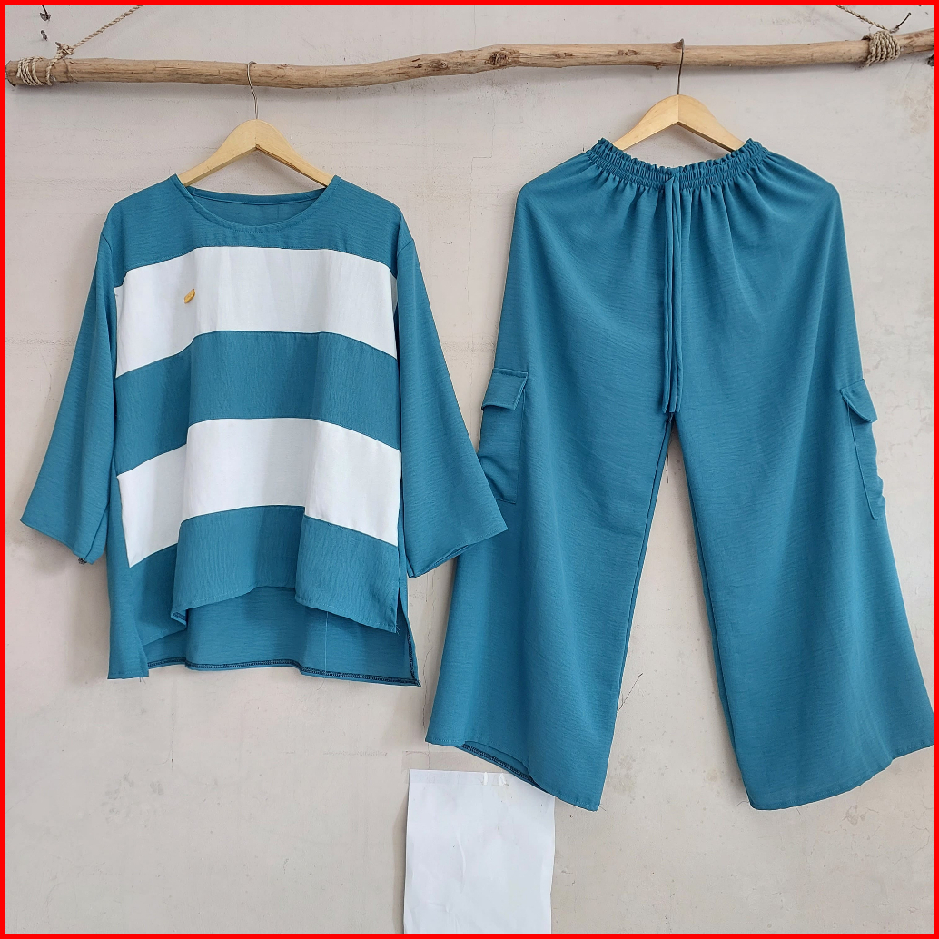 One Set Blaster Cargo - Setelan Crinkle Airflow Blaster Celana Cargo