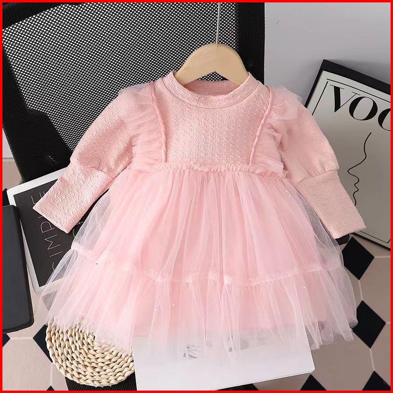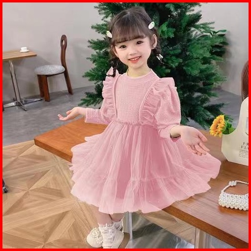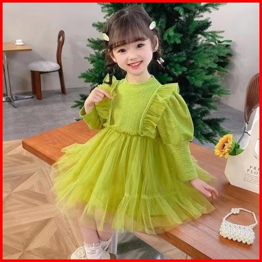 Kf Cat Dress Anak Perempuan Bahan Katun Crinckle Tutu Tile Korea Style Usia 1-4 Tahun
