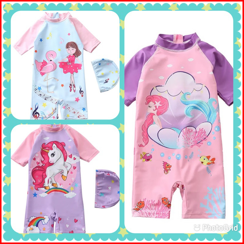 Baju Renang Anak Kualitas Premium Import Tebal Free Topi Gambar Lucu Swimsuit Anak Murah Baju Renang Anak Perempuan Mura
