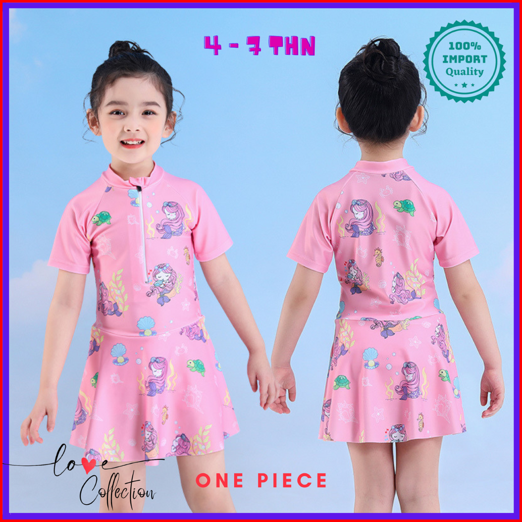 Baju Renang Anak Perempuan Putri Duyung One Piece 4-7 Tahun Swimsuit Anak Mermaid Reseleting Depan Kualitas Premium Lc53