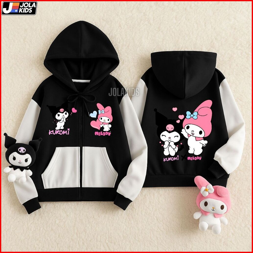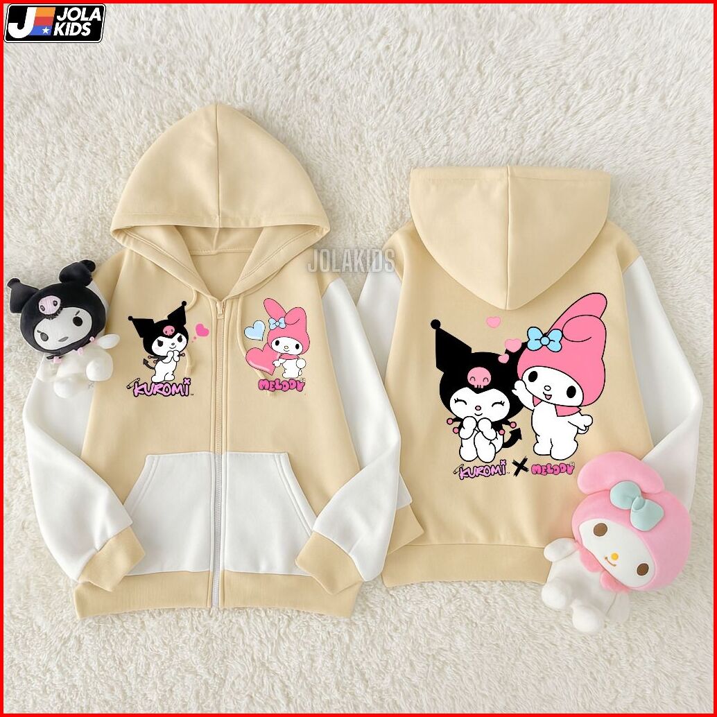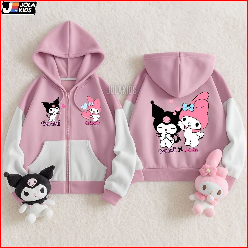Jolakids Jaket Baseball Zipper Anak Kuromi X Melody Perempuan Laki Laki Usia 2 - 12 Tahun