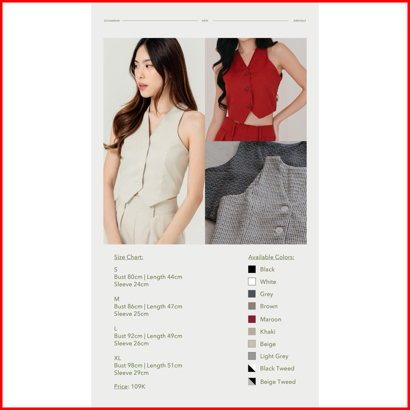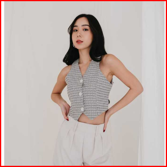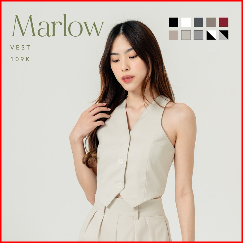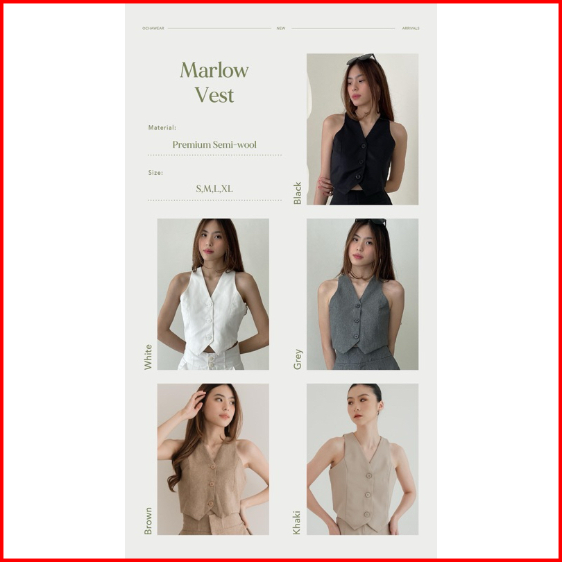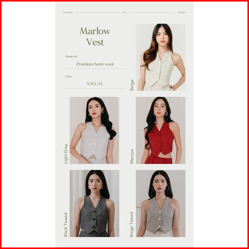 Marlow Vest Ocha Wear Premium Basic Top Atasan Wanita Murah Berkualitas V-neck Rompi Crop