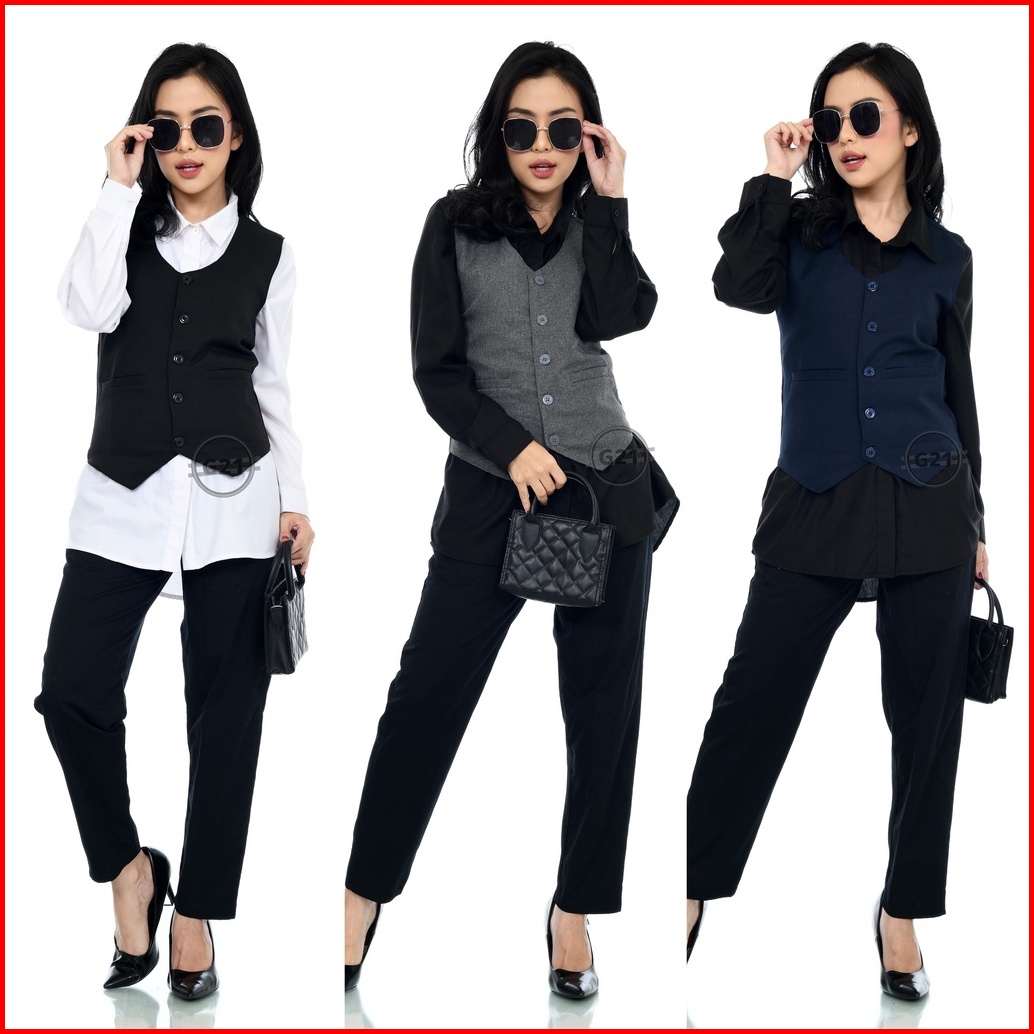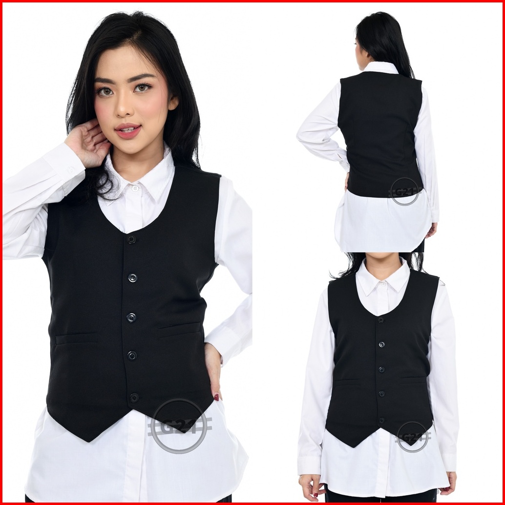 Rompi Vest Jas Wanita Formal Hitam Slimfit Kerja Kantor Premium High Quality Rompi Wanita Formal Rompi Vest Wanita Forma