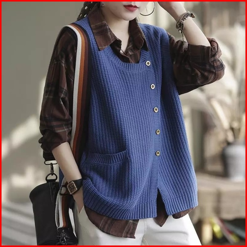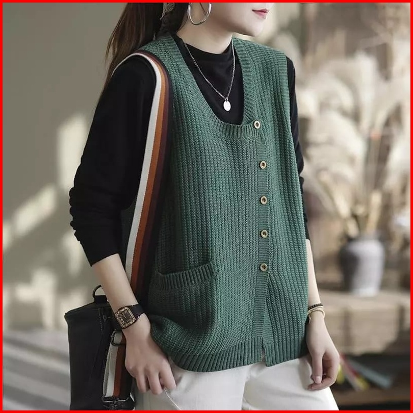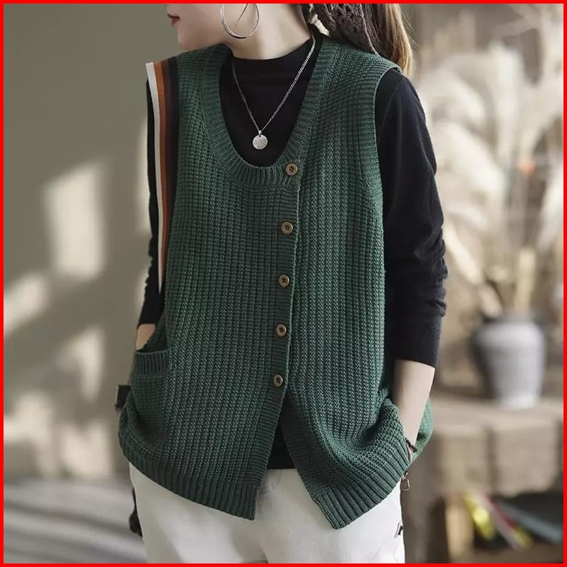 Vest Rompi Wanita Rajut Tebal Kancing Samping