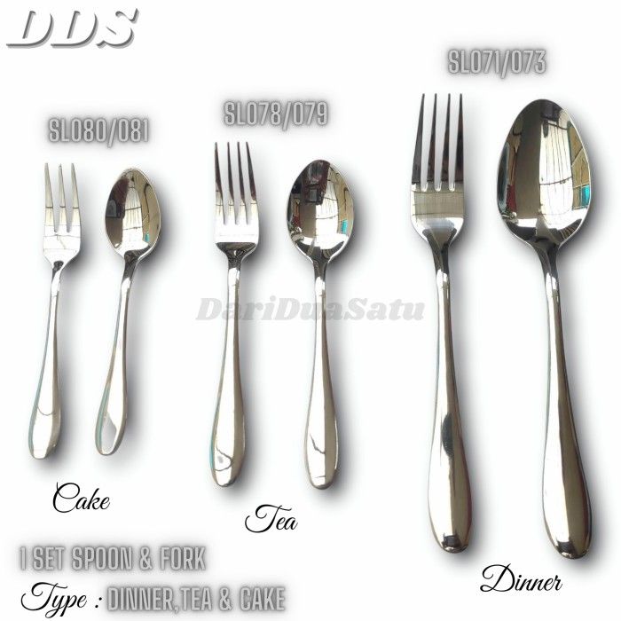1 Set Sendok Garpu Hotel Stainless Tebal Premium Dinner Tea Cake Spoon - SL080/081