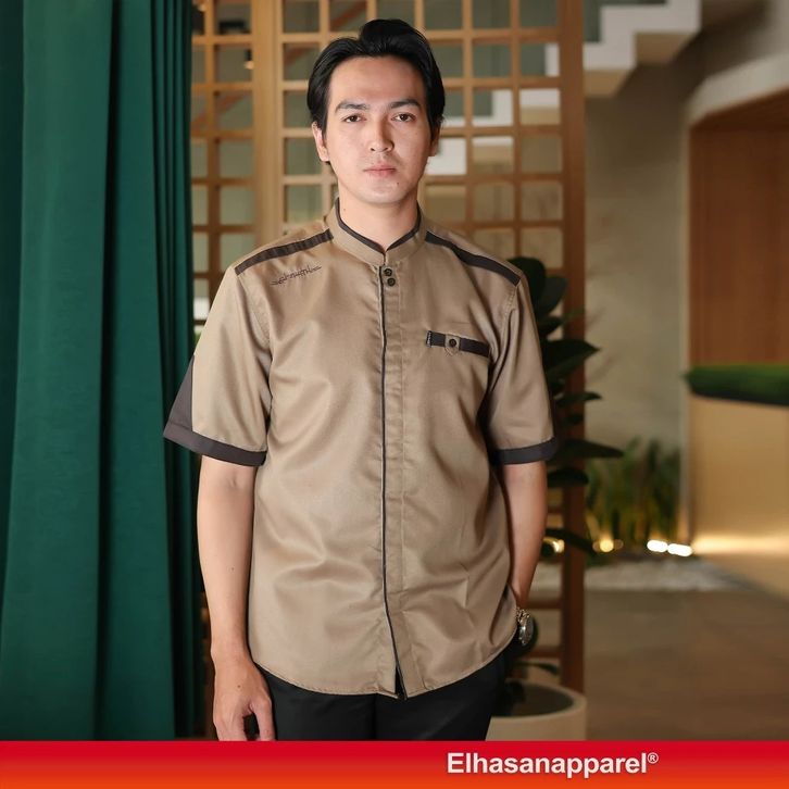 BAJU KOKO PRIA ELRUMI PREMIUM KOKO PRIA DEWASA LENGAN PENDEK MOTIF YISUNSIN WARNA COKELAT BAJU MUSLIM PRIA TERBARU 2026