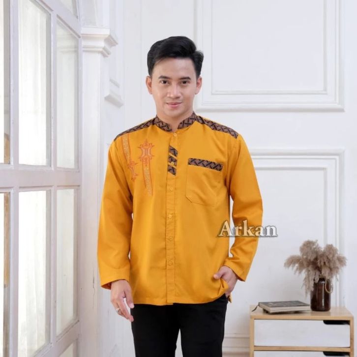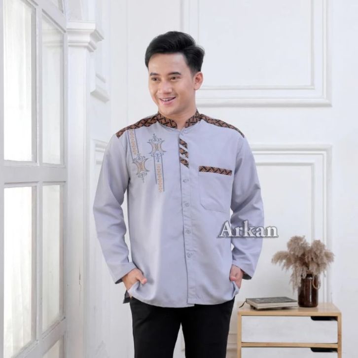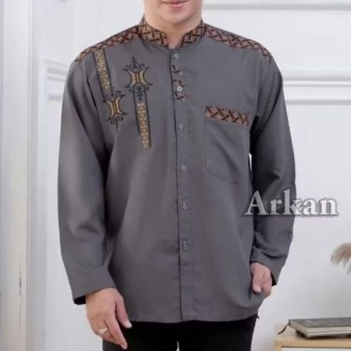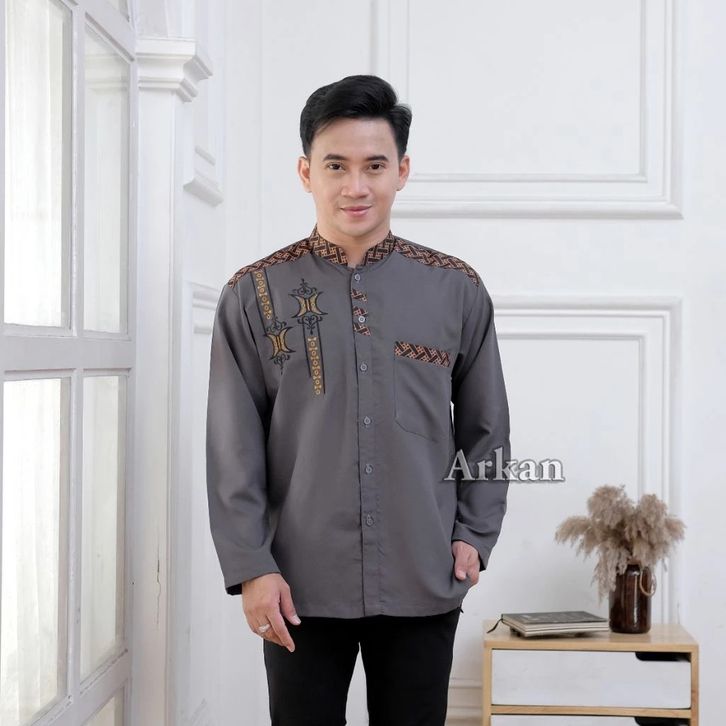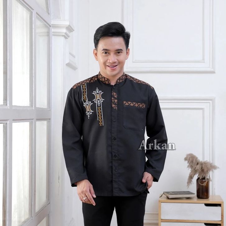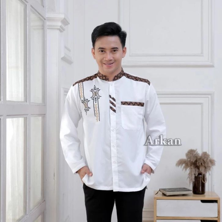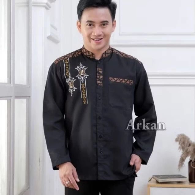 BAJU KEMEJA KOKO PRIA MUSLIM LENGAN PANJANG MOTIF BORDIR KOMBINASI LIST BATIK BAHAN VITO SIGNATURE PREMIUM