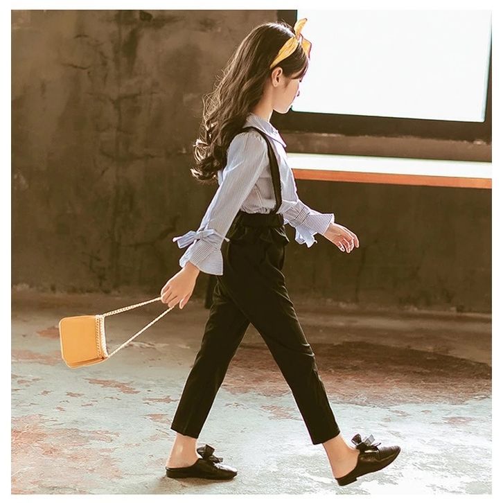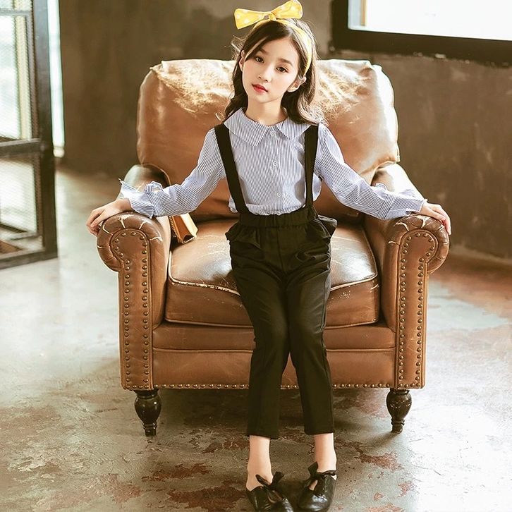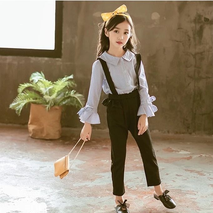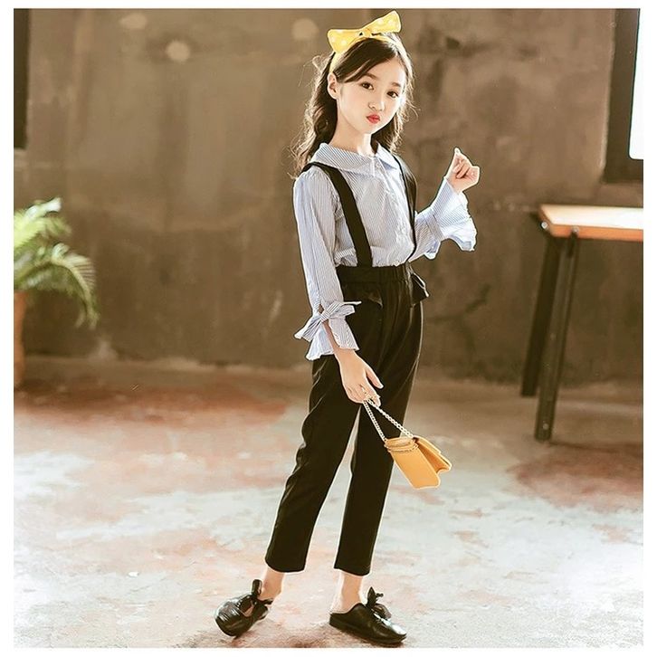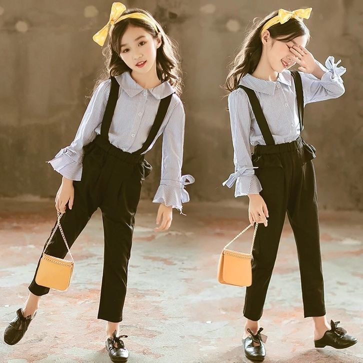 Setelan Anak Remaja Tanggung Perempuan Kemeja Garis Celana Jumpsuit Fashion Anak Cewek Set Baju Anak Perempuan Terbaru