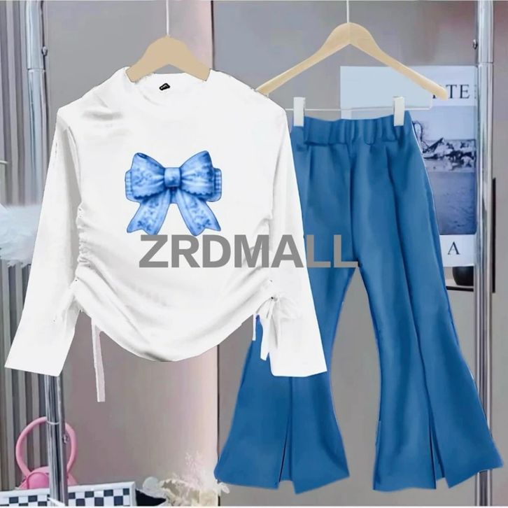 Setelan Anak Perempuan Celana Cutbray Bahan Scuba Model Serut Set Baju Anak Perempuan 1-12 Tahun Terbaru