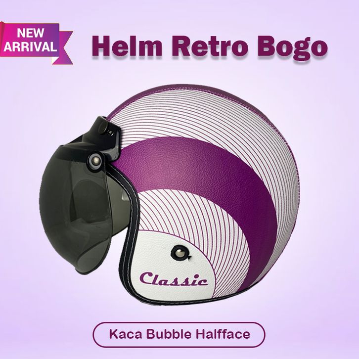 Helm Retro Bogo Kulit ZDP 01 B Kaca Bubble Halfface Helmet SNI