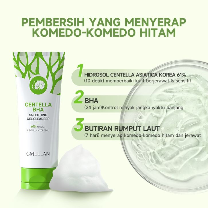 [Mall]Gmeelan Skincare Gmeelan Centella BHA Facial Cleansers Gel 80g Memperbaiki Kulit