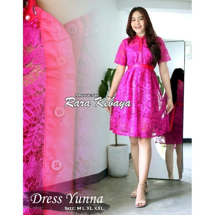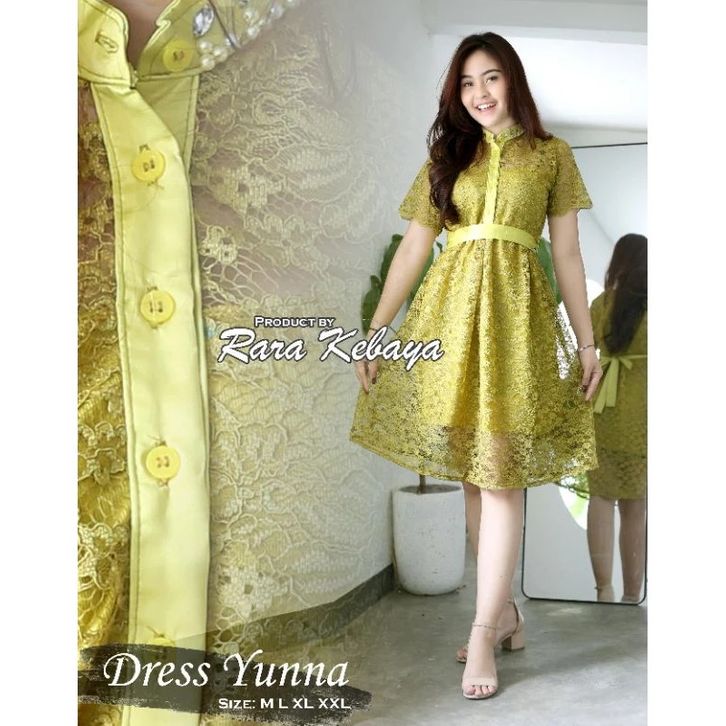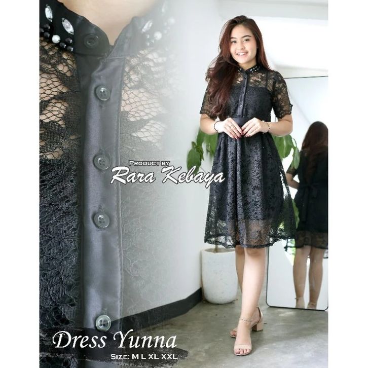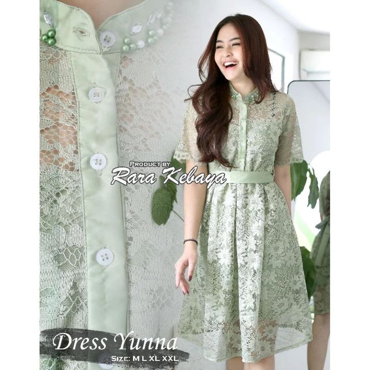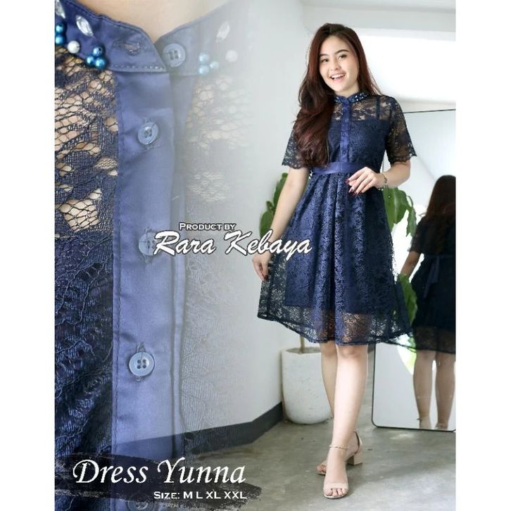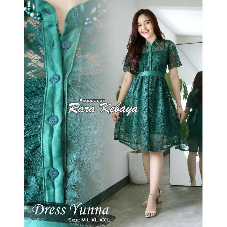 Yunna Dress Pesta Dress Brokat Mix Bahan Velvet Dan Kombinasi Payet Di Bagian Leher Dress Natal Formal Dress Lengan Pend