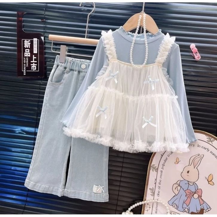 Setelan Baju Anak Perempuan 3 In 1 Outer Tile Dan Celana Jeans Anak Perempuan Set Baju Anak Perempuan Tanggung