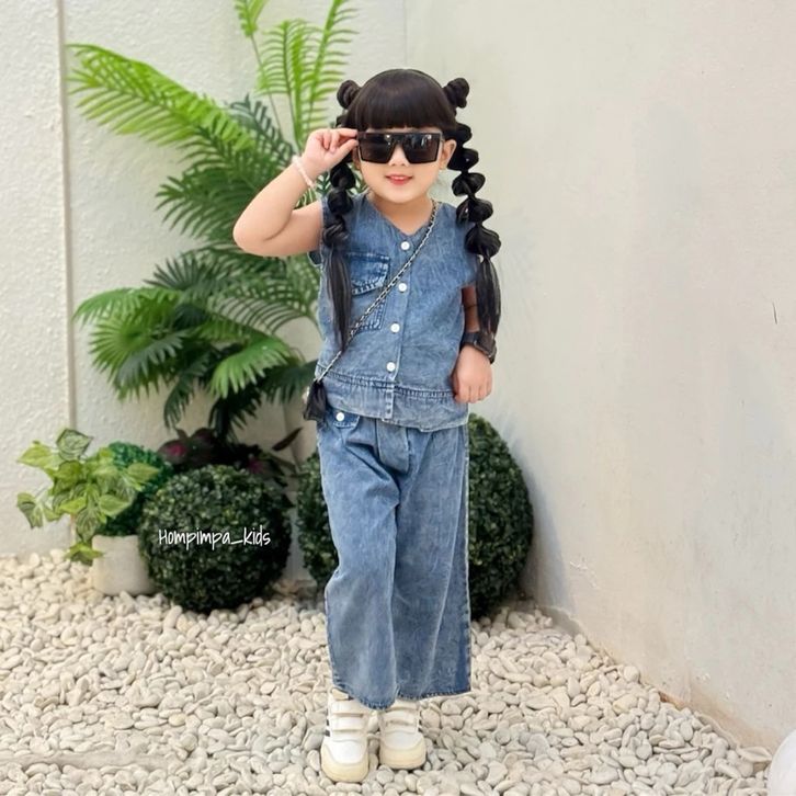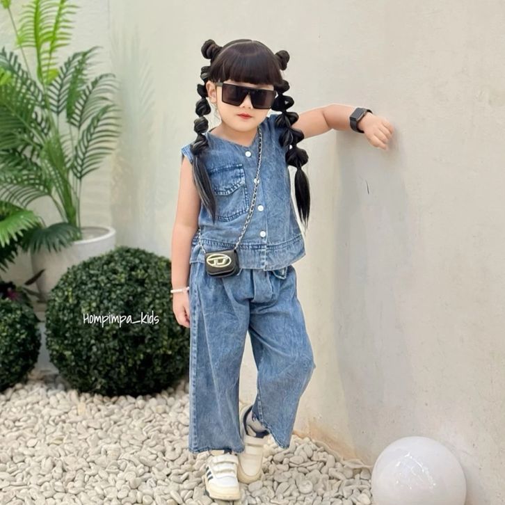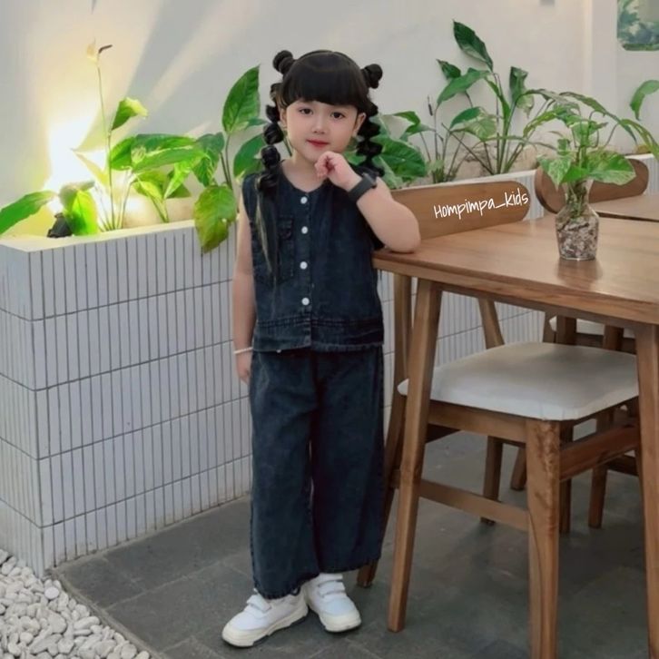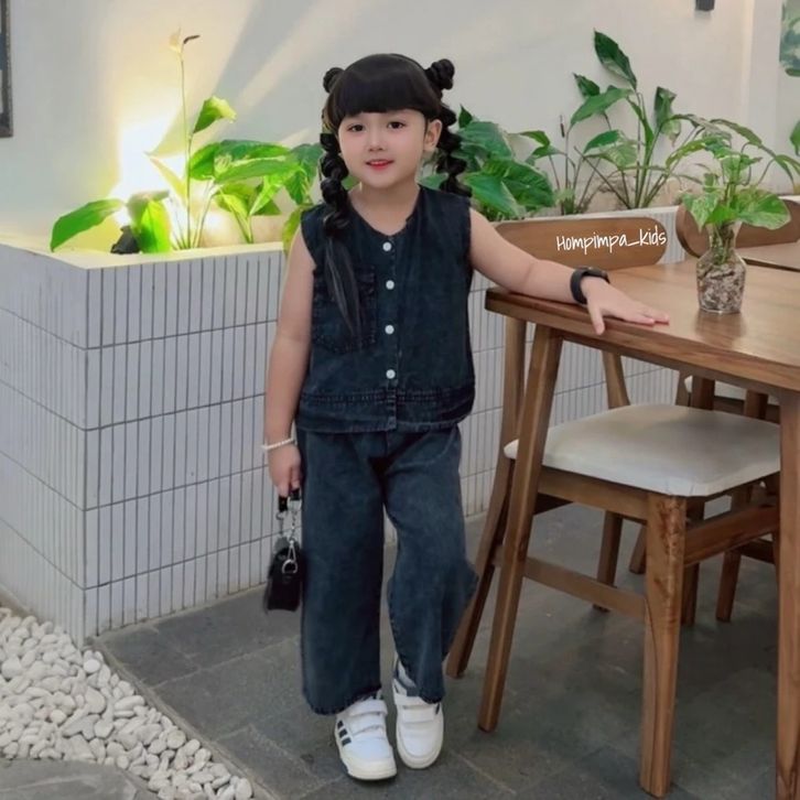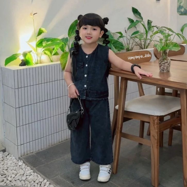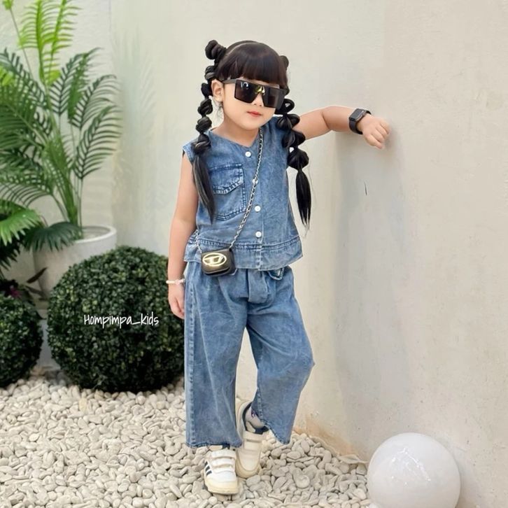 Setelan Jeans Baju Anak Perempuan 1-6 Tahun Setelan Vest Celana Kulot Anak Perempuan Terbaru Fashion Anak Cewek
