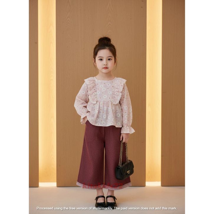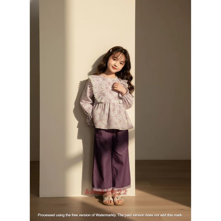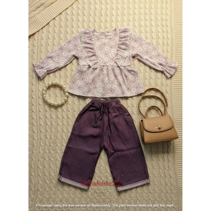 Setelan Anak Perempuan Motif Bunga Bahan Cringkle Erora Dan Celana Bahan Denim Kekinian Set Baju Anak Cewek 1-12 Tahun