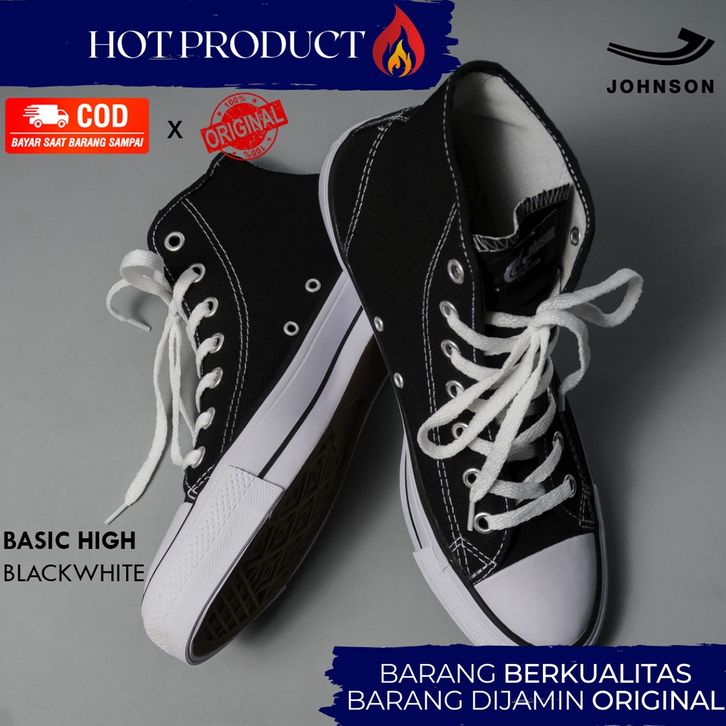 SEPATU JOHNSON BASIC HIGH BLACKWHITE SEPATU SEKOLAH SNEAKERS PRIA WANITA CASUAL KASUAL ORIGINAL SEPATULOKAL