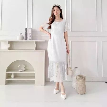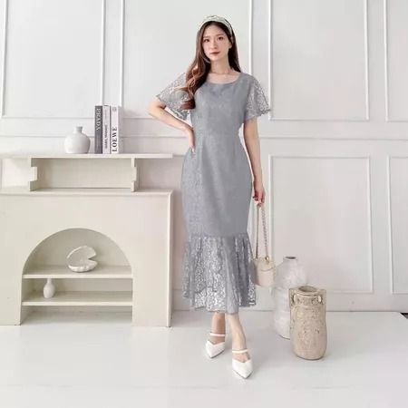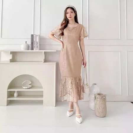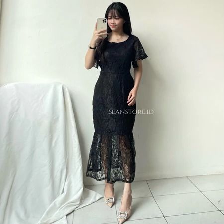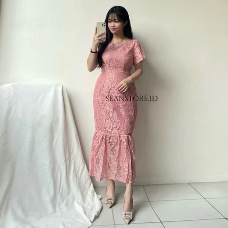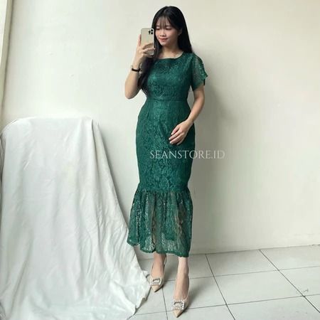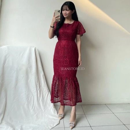 Sara Dress Natal Brukat Wanita Elegant Feminim Korean Look Simple Dress Kondangan Pesta Bridesmaid Kekinian