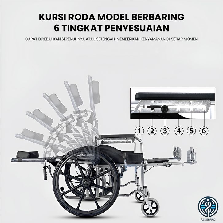 Kursi Roda 24 Inch Alkespro Sandaran Rebah 180°+ Meja Portabel & Baskom Pispot Fadhillah Herbalindo