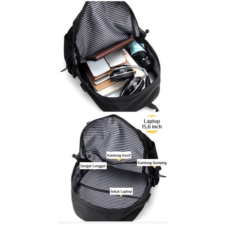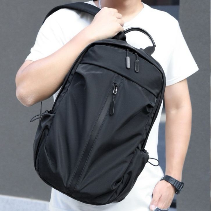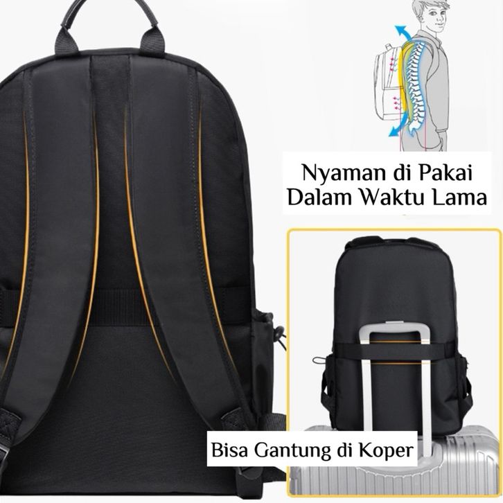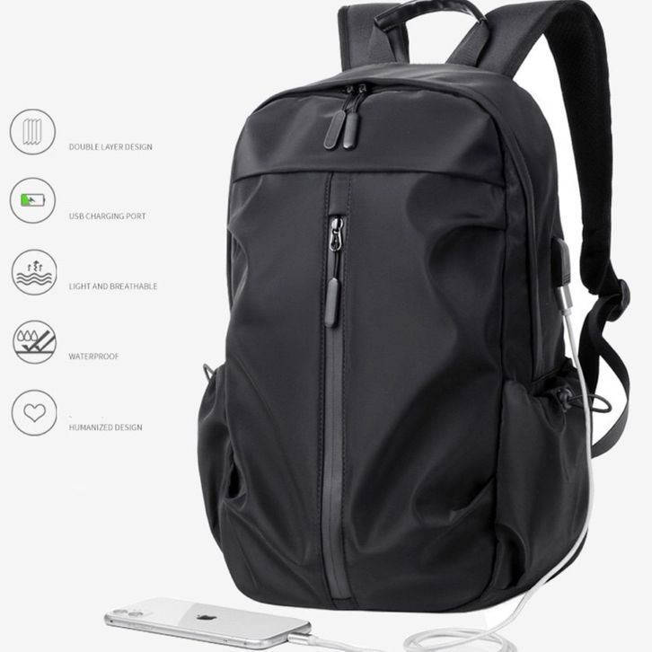Tas Ransel Sekolah Kerja Pria Wanita Back pack Hiking Travel Nilon Hitam Polos Bahan Kuat Kapasitas Besar Stylish