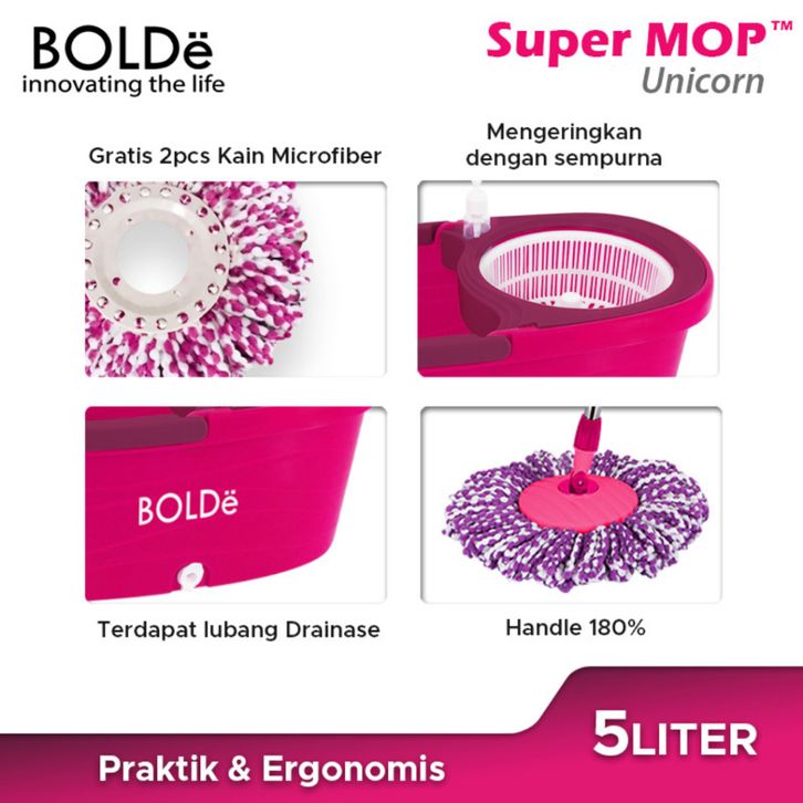 BOLDe Alat Pel Lantai Super Mop Unicorn Kapasitas 5 Liter terlaris 2024
