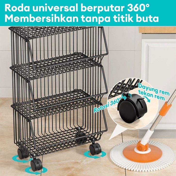 RAK TROLI SUSUN BESI RAK LANTAI BERODA RAK KERANJANG BUAH DAN SAYUR RAK RUANG TAMU RAK SERBAGUNA ESTETIK MULTIFUNGSI