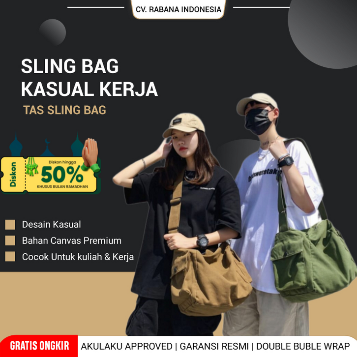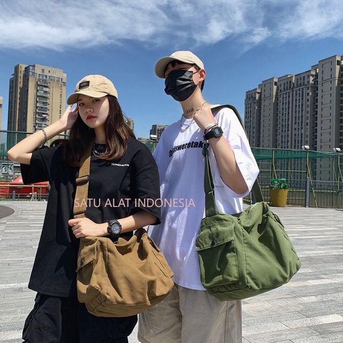 Tas Selempang Pria Sling Bag Kasual Kerja Kuliah Tas Kanvas Tebal Muat Banyak Barang Kanvas Kualitas Premium