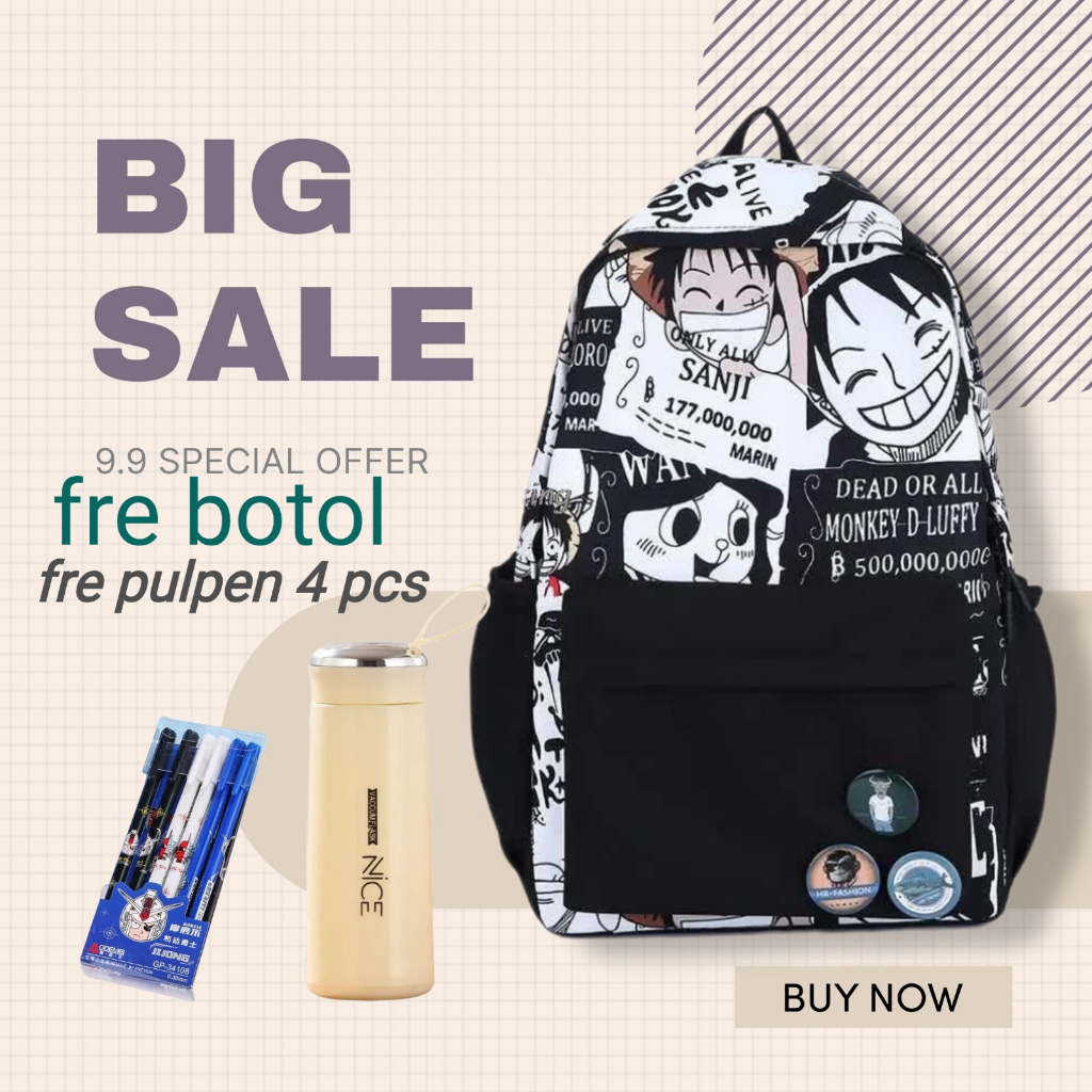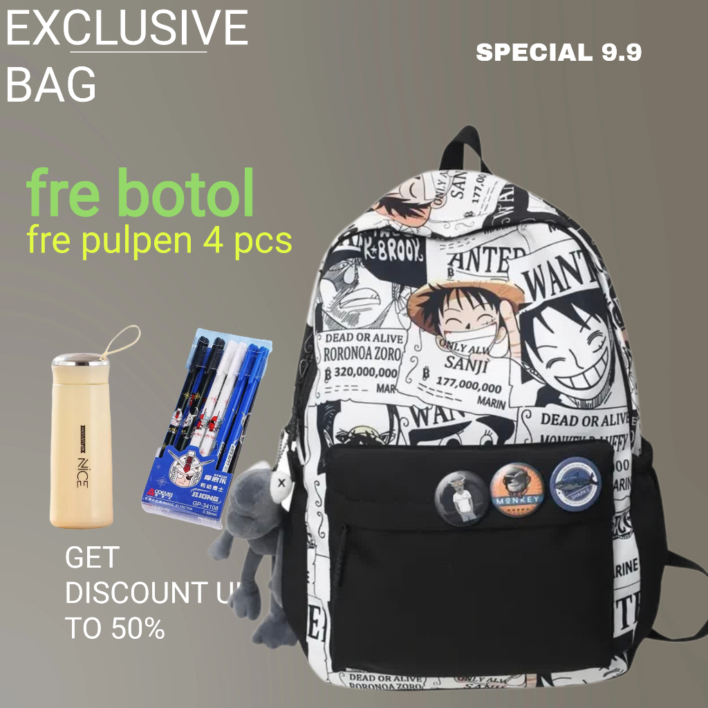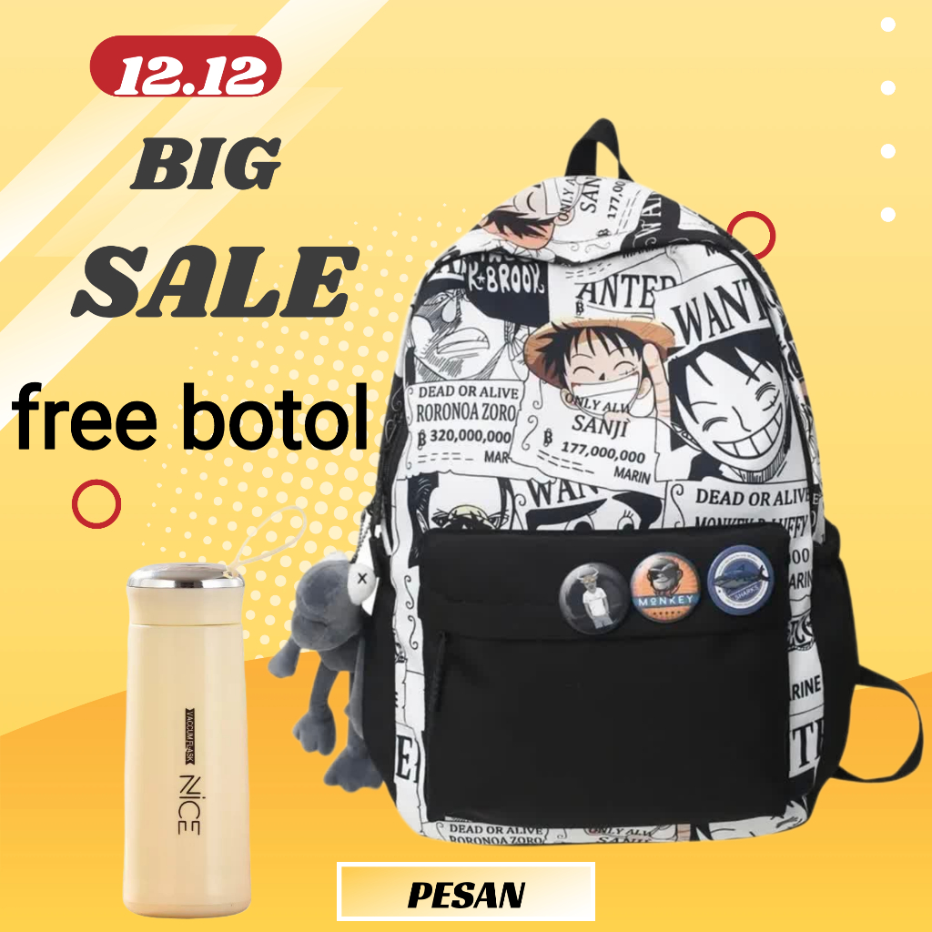 Bagpack One Piece Strawhat After Time Skip Series Tas Ransel Sekolah Unisex Keren ADA FREE BOTOL