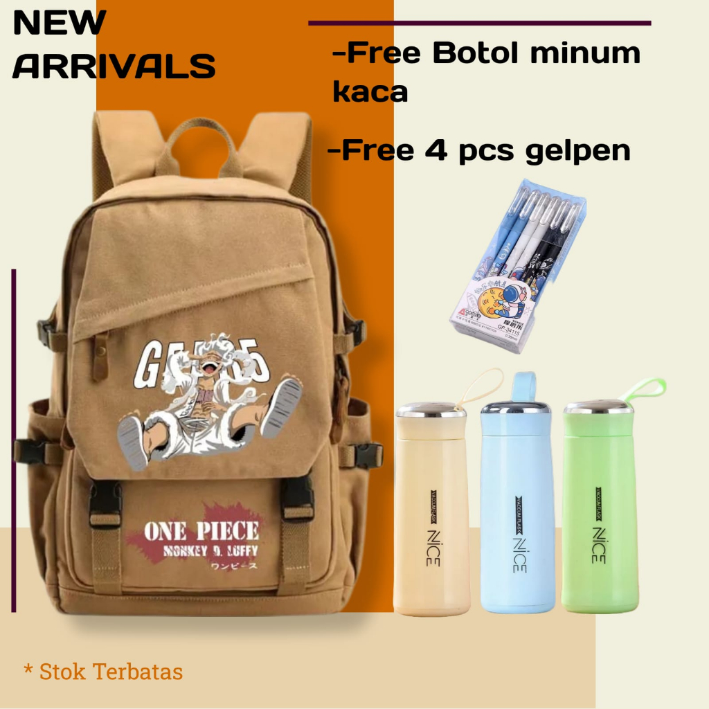 Bagpack One Piece model terbaru Strawhat After Time Skip Series Tas Ransel Sekolah Unisex Keren ADA GRATIS BOTOL+PULPEN