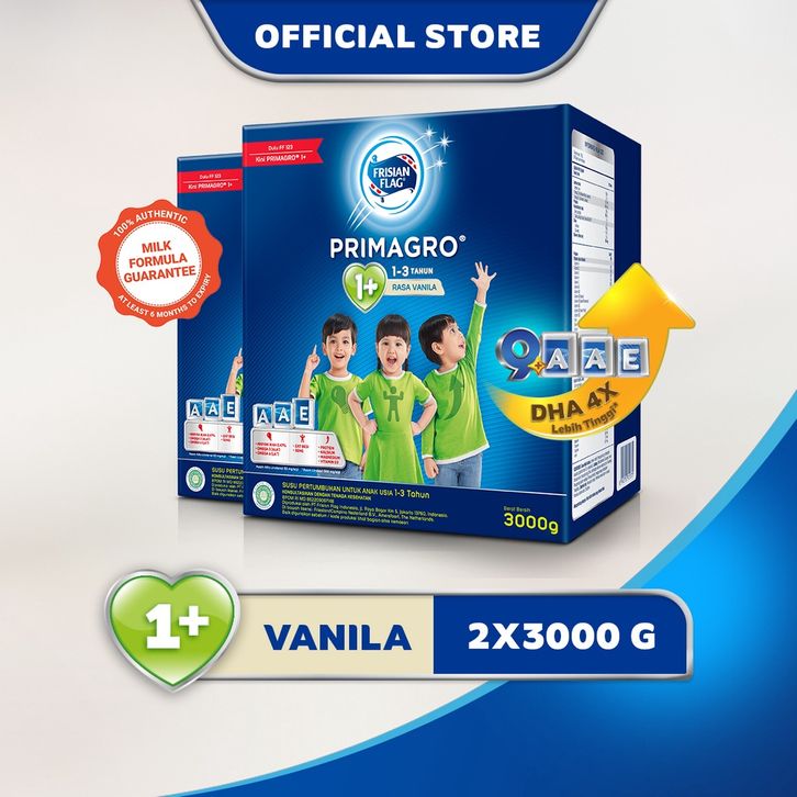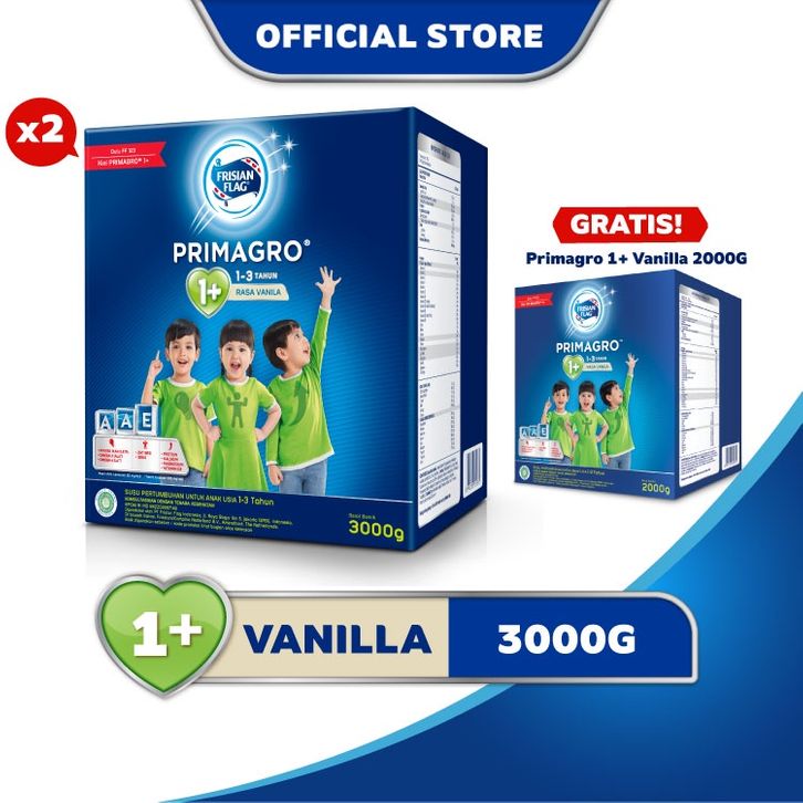 FRISIAN FLAG PRIMAGRO 1+ VANILLA 3000 GR (1-3 TAHUN) SUSU FORMULA PERTUMBUHAN ANAK - 2 PCS